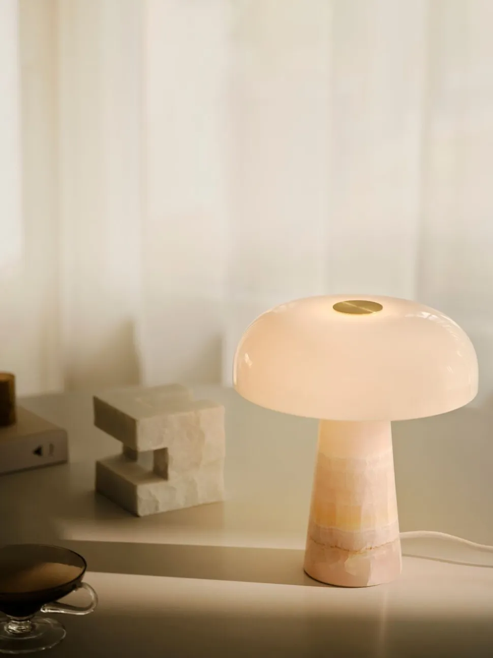 Den lyserøde jadesten er en sjælden og unik variant af jade, og derfor kan linjer, farver og mønstre variere fra lampe til lampe. Dette er en del af charmen ved at arbejde med naturlige materialer.