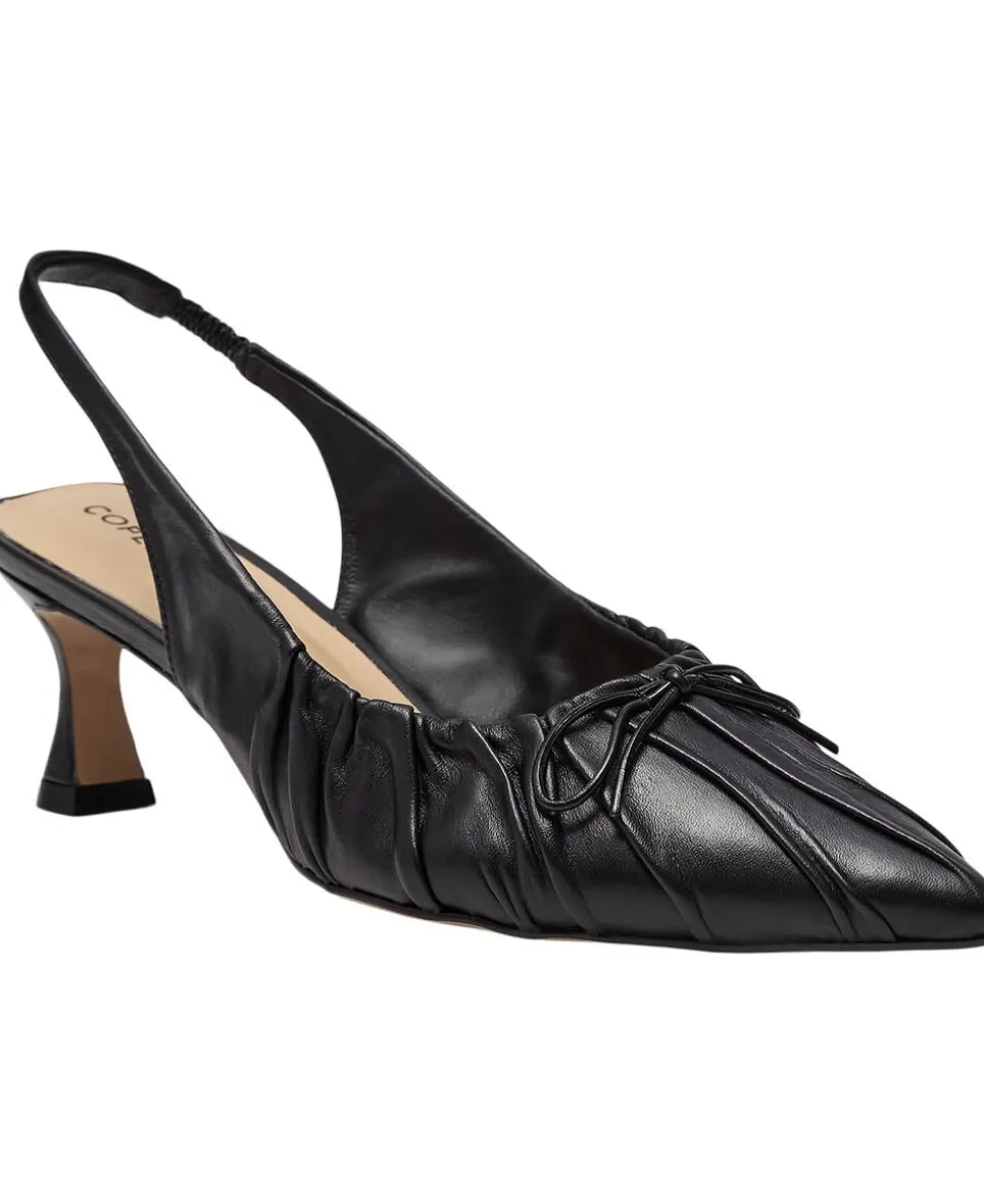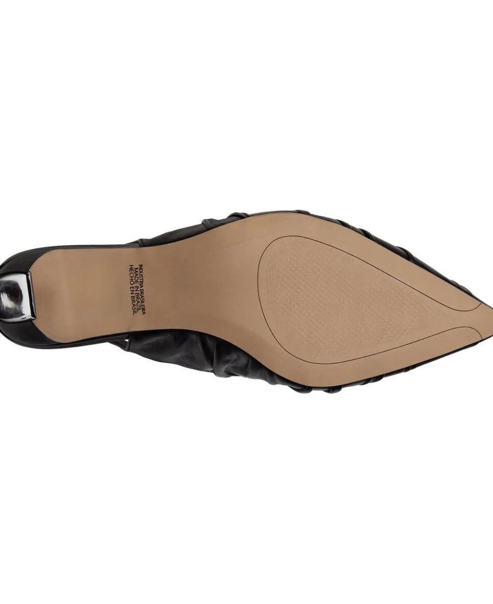 Elegant med et twist! Denne håndlavede sorte lædersandal med rynkedetaljer og en elegant killingehæl giver en ubesværet, smart stemning – perfekt til både dag og aften. Hæl – 6 cm