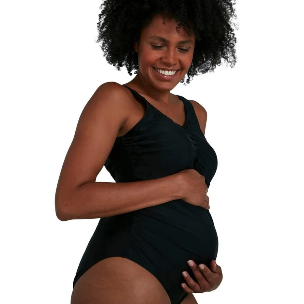 Her har du en lækker og flot graviditets-badedragt, med fine detaljer, der passer til hvilken som helst uge. Speedo Grace U-Back Maternity byder på et strækbar kvaltiet og en tætsiddende pasform, der sørger for en fri bevægelighed. Materialet er samtidigt klor-resistent og hurtigtørrende, der giver en fantastisk komfort. Materiale: