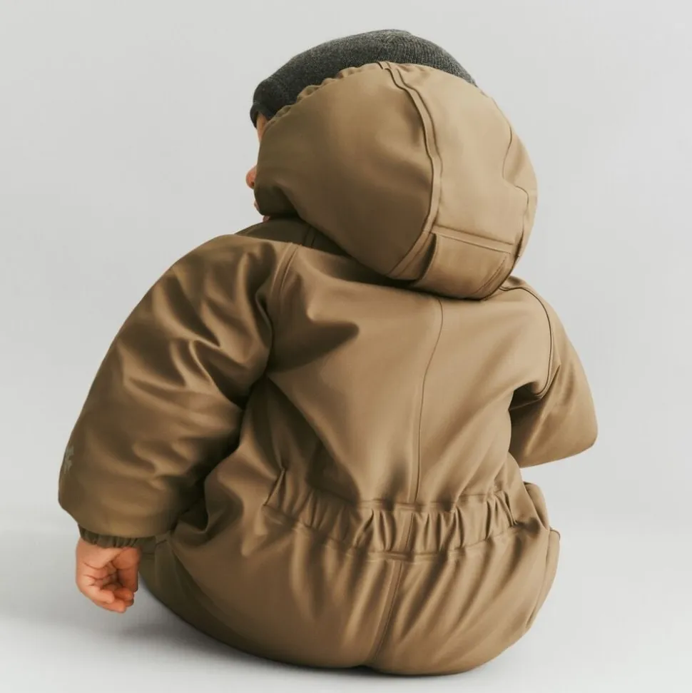 Skøn og uundværlig flyverdragt i vandtæt materiale til din baby. – Normal pasform – Aftagelig og justerbar hætte – Ribkrave – Dobbelt vindstolpe med vandtætte lynlåse – Lomme på brystkassen – Aftagelige gummistropper under fødderne – Elastik i manchetter og i benene, der lukker tæt – Reflekser Wheat’s PU dragter er en perfekt blanding mellem den velkendte regndragt og en flyverdragt. Denne dragt har en tykkere vinter polstring, som gør den varm på selv de koldeste og vådeste vinterdage. Vinterdragten er lavet i åndbart polyurethan (PU) materiale og er derfor unik, da den kan holde dit barn både tørt og varmt på én og samme tid. Dragten har mange praktiske detaljer såsom aftagelig og justerbar hætte, ribkrave og dobbelt vindstolpe. Den ene lynlås kan åbnes fra hagen og hele vejen ned til anklen. Lynlåsen i højre side kan åbnes til midt på brystkassen. Indvendigt er der en lukning over brystet med velcro, som støtter og holder dragten på plads. — Vandsøjletryk: 9. 000 mm Åndbarhed: 600 g/m2/24 t PFC-fri Florin-fri (BIONIC-FINISH® ECO) Vandtætte lynlåse Alle sømme er vandtætte og forseglet — Standard 100 by OEKO-TEX® Yder materiale: 100% Genanvendt polyester i åndbar PU (polyurethan belægning) Isolering: 100% Genanvendt polyester For: 100% Genanvendt polyester