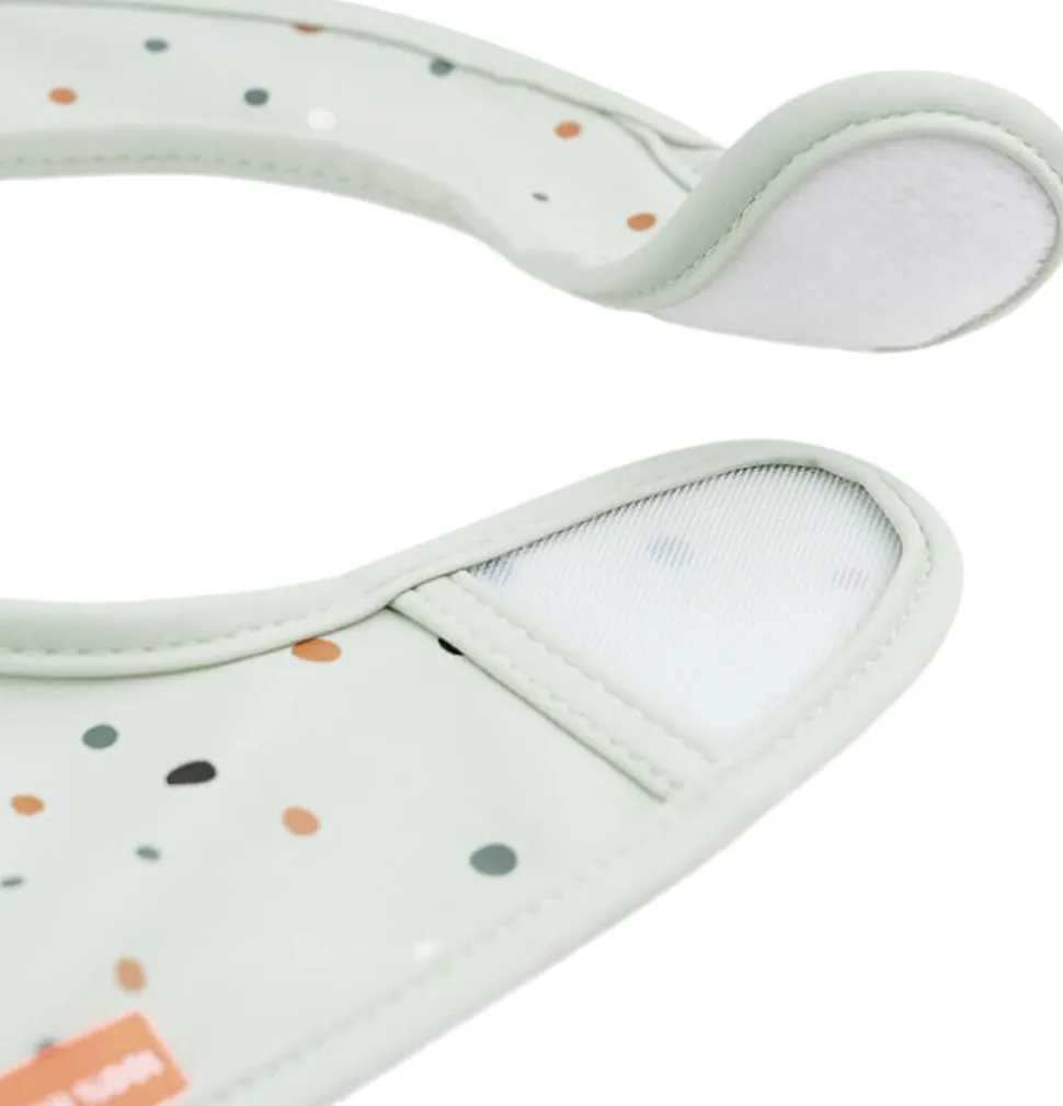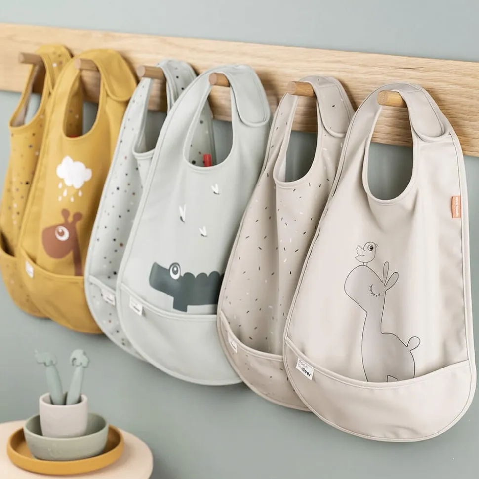 Din Deer friend er klar til at gøre spisetid lidt mindre rodet med dette praktiske sæt af to vandtætte hagesmække med Velcro-lukning. De er nemme at tørre af og den smarte lomme fanger den mad der ryger ved siden af og sparer dig en masse rengøringstid. De bløde hagesmække har en smart Velcro-lukning, der gør dem nemme at tage af og på. Det søde sæt består af to hagesmække, den ene i en lys, grøn nuance dekoreret med Croco og ildfluer og Happy dots i forskellige, lyse farver på den anden.