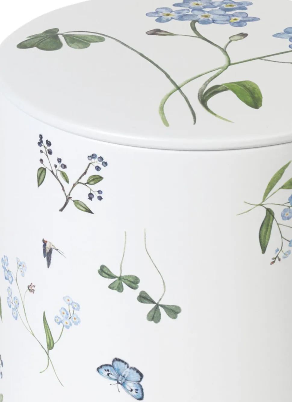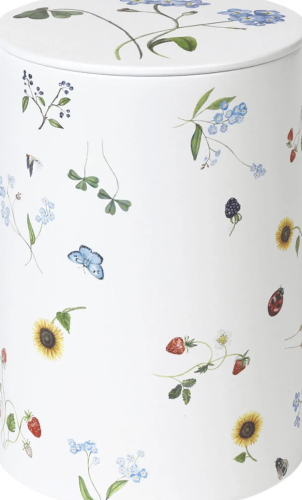 Blomstrende farver, former og følelsen af en autentisk sommerstemning. Med Hammershøi Summer fra Kähler kan du næsten mærke solens stråler og den varme sommerbrise, når du sætter bordet til kaffe og lækkerier på terrassen, balkonen eller i sommerhuset. Hammershøi Summer er inspireret af de danske somre eventyrlystne former, farver og følelser, og i 2025-sæsonen har en smuk og stemningsfuld symfoni af de eksisterende motiver i Hammershøi Summer-serien fundet vej ind i et par stilfulde opbevaringsdåser. Denne Hammershøi Summer opbevaringsdåse, smukt dekoreret i metal og prydet med en symfoni af forskellige Hammershøi Summer motiver, måler 14,5 cm i højden og er perfekt til kiks eller andre lækkerier til dig selv eller dine sommergæster, uanset om du efterlader den på hylden i køkkenet, bringer den til bordet eller blot ønsker at tilføje masser af autentisk sommerkomfort til dit hjem og omgivelser. Illustrationerne er placeret rundt om tinen, hvilket skaber et yndigt billede af de mange fine blomster og forskellige sommerfugle. Symfonitemaet er malet på metallet på samme måde som de andre temaer i Hammershøi Summer serien, hvor planter og blomster nærmest bevæger sig spontant hen over de klassiske riller på de hvide keramiske stykker. Det er som om de næsten spirer, næsten danser over overfladen med deres forskellige asymmetriske retninger. Hvis du allerede har andre stykker i Hammershøi Summer-serien, vil opbevaringsformene med symfonitemaet være smukke tilføjelser til de andre temaer og fuldende en munter og hyggelig sommeratmosfære på bordet, mens du nyder den autentiske nostalgi i Kählers håndlavede Designtraditioner. Motiverne er skabt af kunstner Rikke Jacobsen på det eksisterende Hammershøi bordservice designet af Hans-Christian Bauer. Med sine smukke akvareller skaber hun detaljerede motiver, hvor flora og fauna er de vigtigste temaer, der perfekt indfanger naturen og årstiderne omkring os.