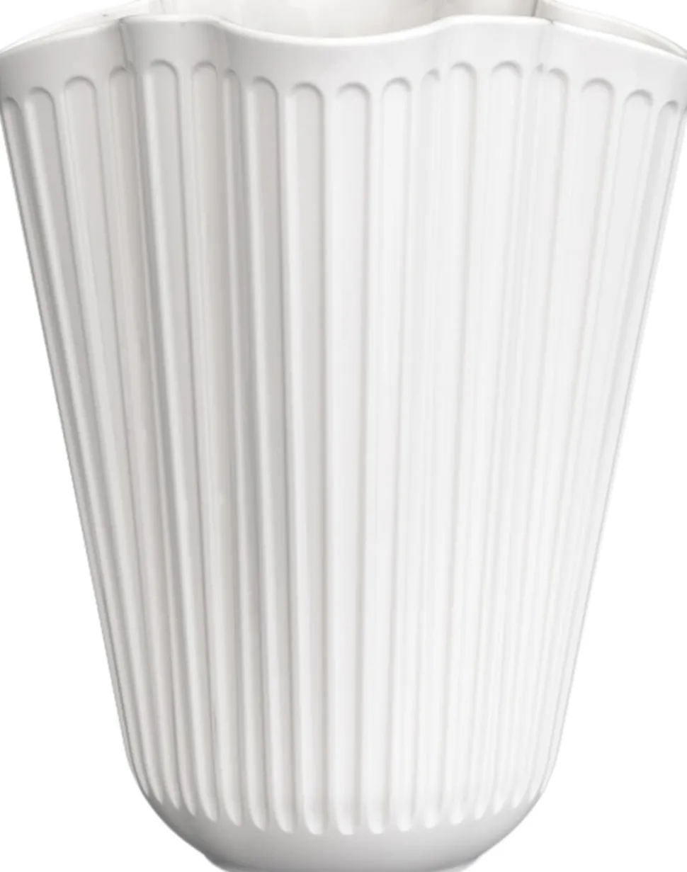 Godt håndværk og originalt dansk design foldet ud i et nyt og moderne udtryk for en smuk og stilfuld fejring af Hammershøi-seriens 10 års-jubilæum. Med Hammershøi Unfold-vaseserien kommer du nok engang helt tæt på Kählers på én gang både autentiske og moderne udtryk. Det helt særlige ved Hammershøi Unfold-vaserne er deres foldede form i et blødt og indbydende design, der inviterer til, at blomsterne falder på en anderledes smuk måde og læner sig mere ud i siderne af vasen. På den måde forlænges blomsterne visuelt opad ved hjælp af vasens form, der samtidig understøtter, at blomsterne står naturligt. Hammershøi Unfold-vaserne er fremstillet i klassisk kridhvid keramik og kommer i to forskellige størrelser. Denne store Hammershøi Unfold-vase måler 20,5 cm i højden, og i selskab med den lidt mindre vase på 16,5 cm får du det perfekte makkerpar til forårets og sommerens buketter og afklippede grene. Begge vaser har den samme unikke foldede form, der giver serien sit umiskendelige både moderne og nostalgiske strejf, der sammen med de ikoniske riller trækker tråde tilbage til Kählers stolte håndværkstraditioner og samtidig med stor selvsikkerhed med masser af dybde og liv peger frem i tiden. Hammershøi Unfold er ligesom resten af Hammershøi-serien skabt af designer Hans-Christian Bauer med inspiration fra en af Svend Hammershøis klassiske vaser fra 1930erne og vil med sit karakteristiske organiske og legende design give plads til, at du selv kan eksperimentere og style dine blomster nemt og naturligt. Det bløde udtryk i Hammershøi Unfold står i stor kontrast til den klassiske Hammershøi-vase, men det trænede designøje vil nok alligevel straks bemærke den enorme lighed og meget familiære følelse, der ligger i form af vasens riller, materiale og stærke udstråling. Med Hammershøi Unfold får du en både nutidig og nostalgisk fortolkning af Kählers håndlavede designtraditioner i et moderne fremsynet perspektiv to unikke kunstværker i et helt særligt udtryk af dybde og liv, der altid har været designtråden i Kählers stolte håndværkstraditioner. På alle måder en sand hyldest til 10 år med Hammershøi-seriens mangfoldighed.