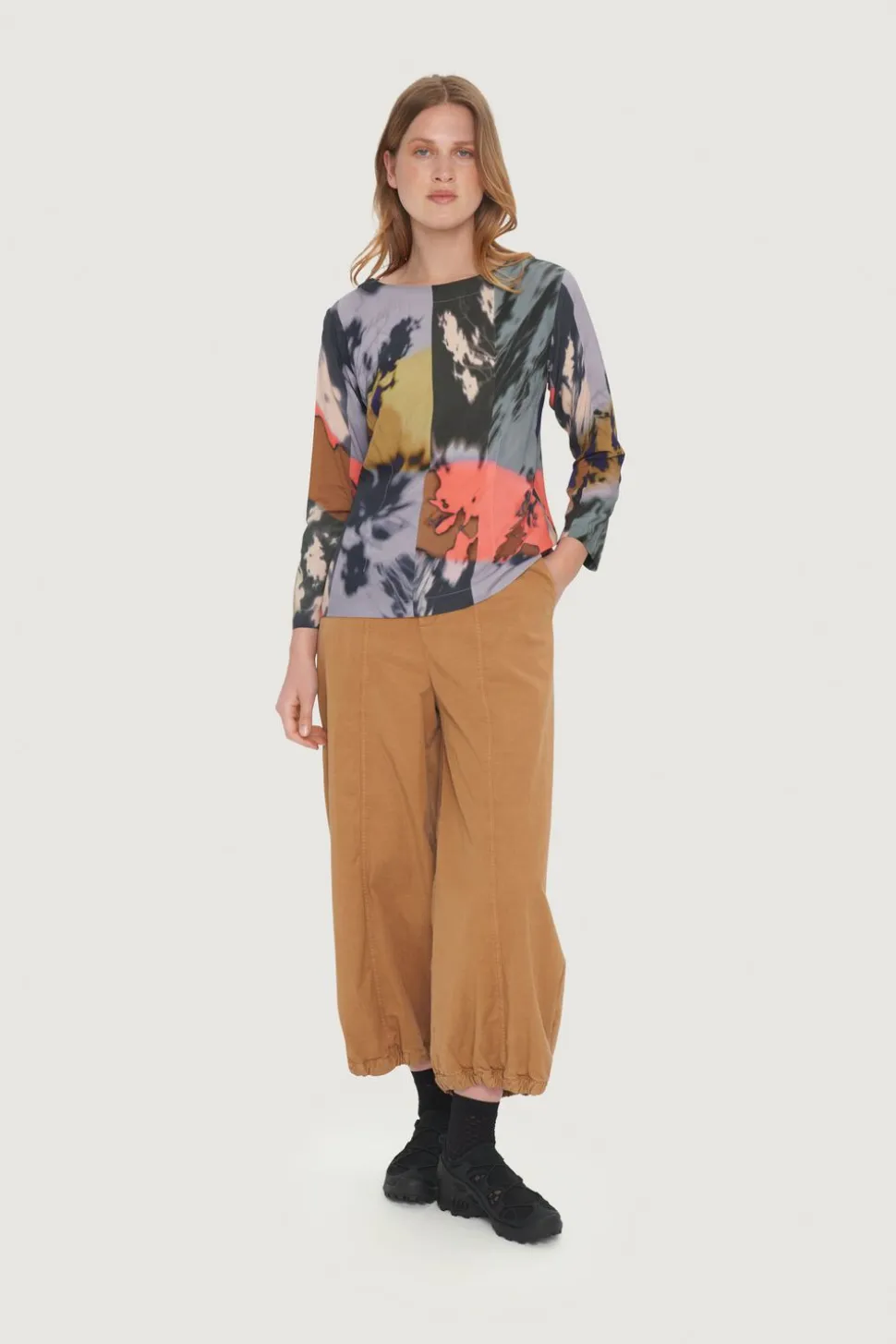 En bluse, man lægger mærke til. Det dramatiske print har et kunstfærdigt udtryk og vil tilføre garderoben et strejf af drama og personlighed. Blusen er flot sammen med bukser med brede ben i en matchende farve. Blusen er produceret i FSC-certificeret viskose og virkelig blød og behagelig at have på.
