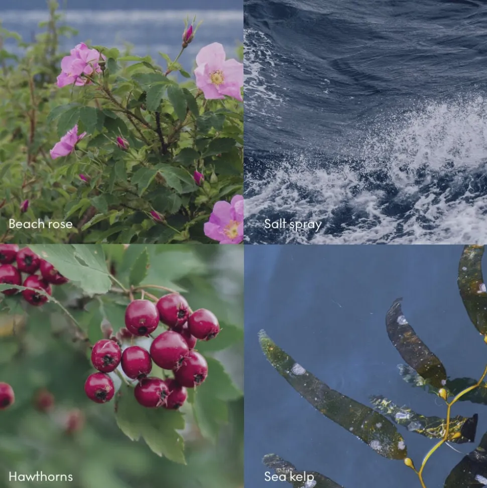 Duftnoter: Salt spray, hav tang, Tjørn, Rosa rugosa (Hybenrose).