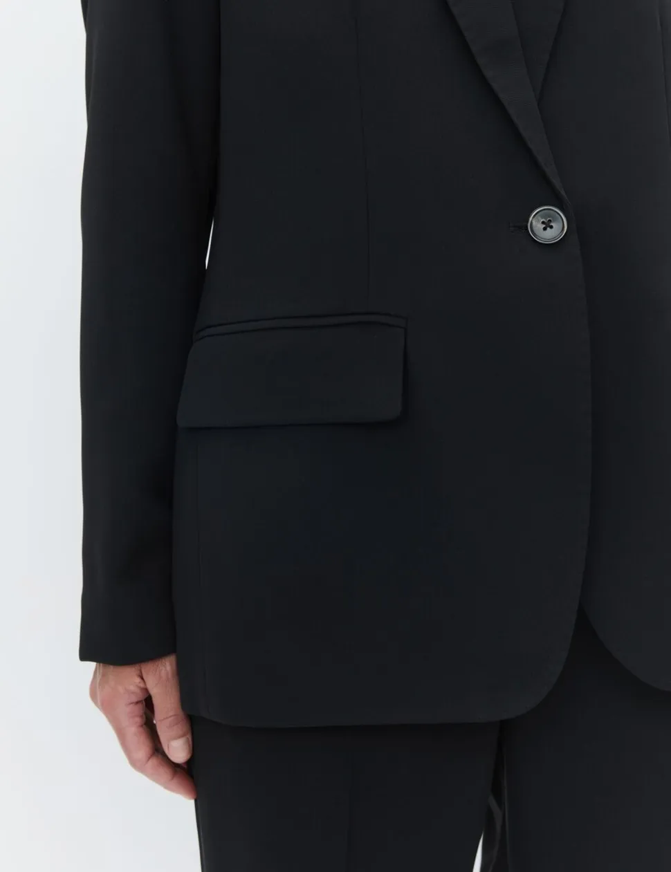 This sharp blazer features a single button closure, patch pockets in the front, and pockets at the chest and interior.. Wear with matching trousers for a tailored look.