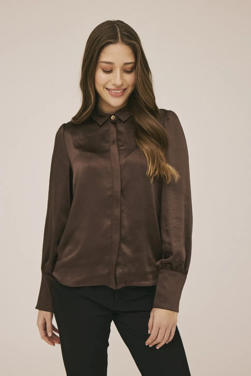 Skjorte fra Magasin du Nord Collection i den fineste kvalitet af 100% genanvendte fibre med GRS-certificering. Skjorten er enkel i modellen med en skjult knaplukning på fronten, lange ballonærmer med manchetter og fine knapper samt en elegant, løs pasform. En skøn skjorte i den smukkeste kvalitet.