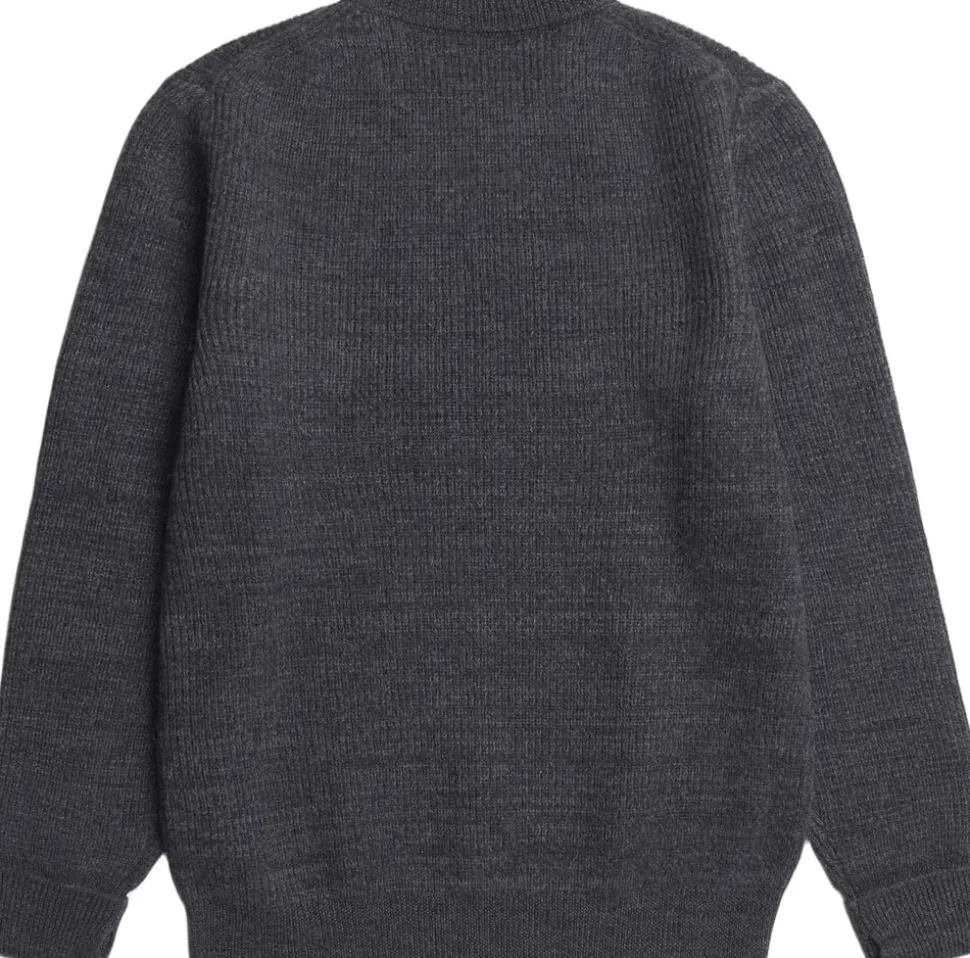 Rund hals med almindelig pasform i en vaskbar blanding af bomuld og uld. Har indsatte ærmer, ribstrikket hals, manchetter og kant samt en brandet fane ved sømmen.
