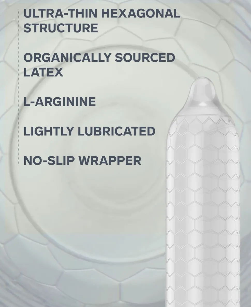 Et banebrydende design fremstillet af 350 bittesmå sekskanter naturens ultimative symbol på skønhed og elasticitet. Det er en revolution inden for fornøjelse, der muliggør en følsom og intim fornemmelse samt en sikker pasform.