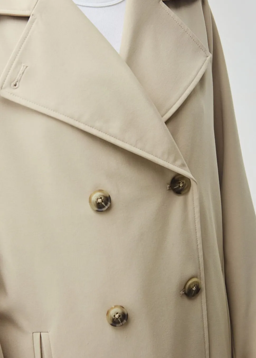 Smuk jakke med i et klassisk udtryk bred krave, bælte i livet og knaplukning. Hiro jacket er perfekt som overgangsjakke fra vinter til forår. Jakken har en rummelig pasform. Vi anbefaler at gå en størrelse ned.