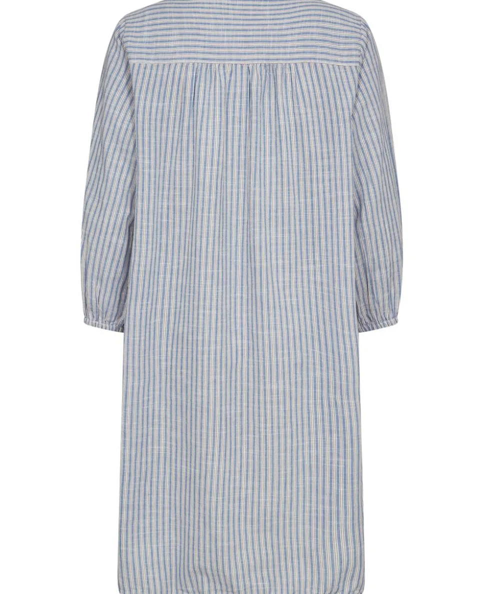 Tunika fra Magasin du Nord Collection i den blødeste kvalitet af 100% økologisk bomuld med GOTS-certificering. Kjolen har det fineste, stribede mønster, trekvartlange ballonærmer, knaplukning på brystet samt en løs pasform. En skøn tunika i den lækreste kvalitet.