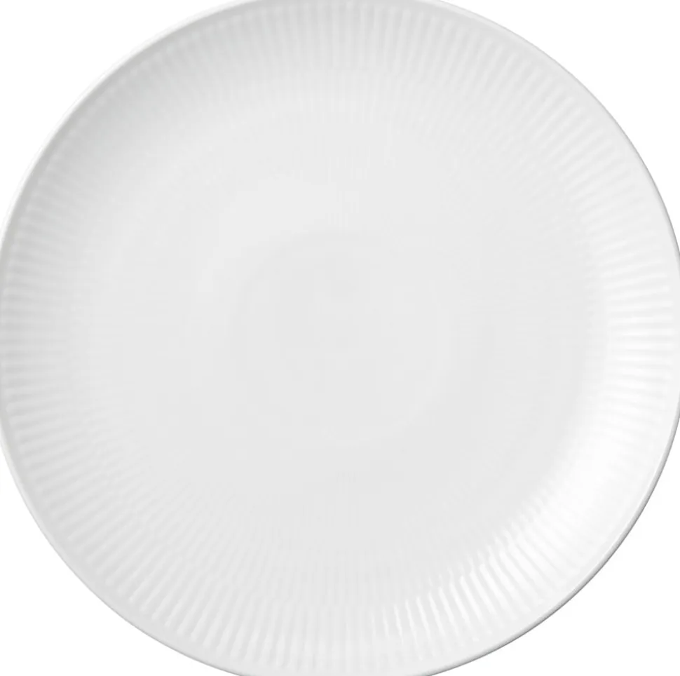 Det hvid riflet spisestel blev designet i d. 19. århundrede. Det er elegant og iøjenfaldende, og gør sig godt, både til hverdag og festlige lejligheder.
