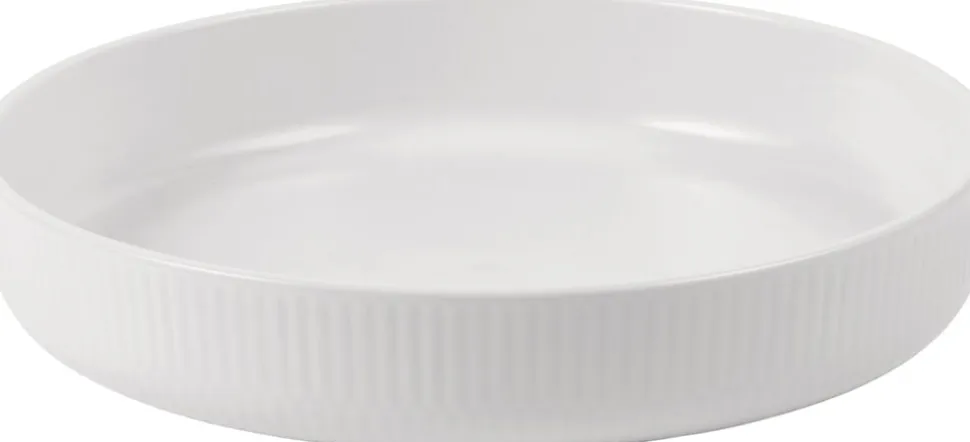Hvid Riflet ovnfast fad på 27 cm er en alsidig tilføjelse til Royal Copenhagens udvalg af ovnfaste fade.