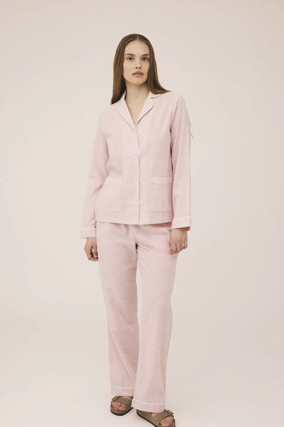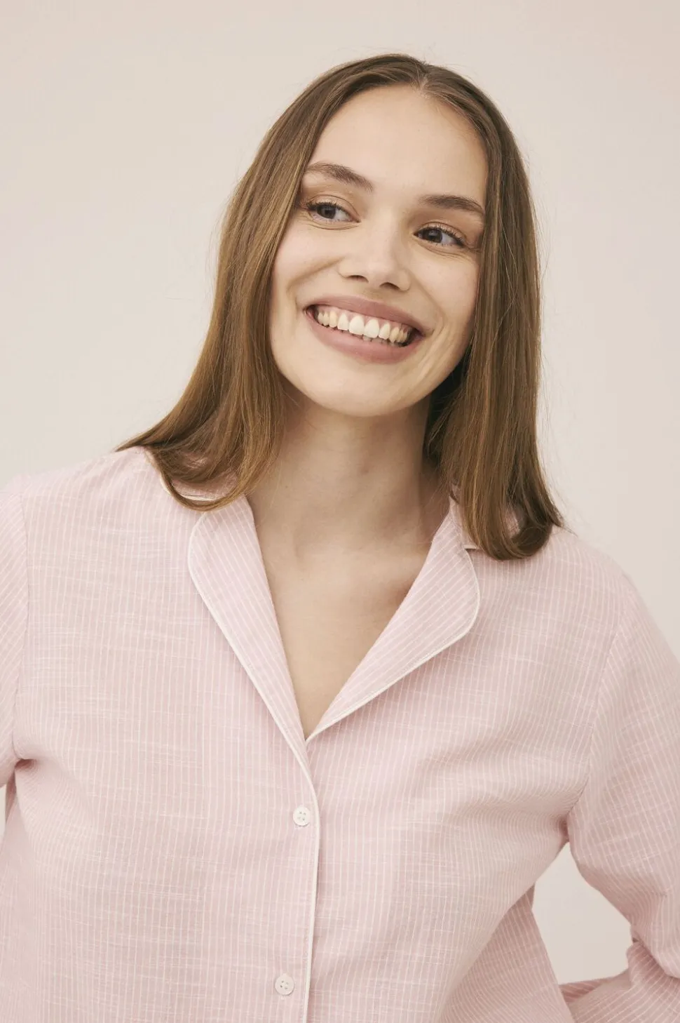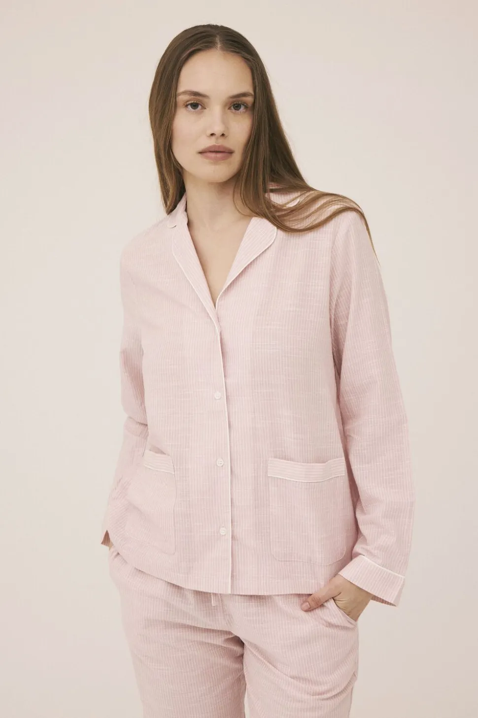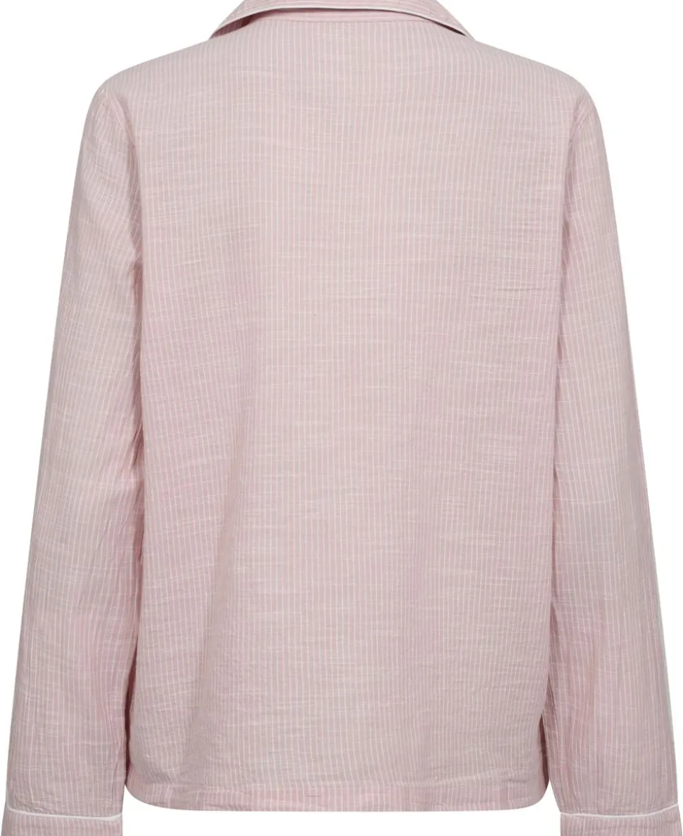 Skjorte fra Magasin du Nord Collection i en blød og lækker 100% bomuldskvalitet med smalle striber. Skjorten har en løs pasform med lange ærmer, knaplukning på fronten, to frontlommer og dekorative pipingbånd. Kombiner den fx med en underdel fra Magasin du Nord Collection for et komfortabelt og luksuriøst natsæt.