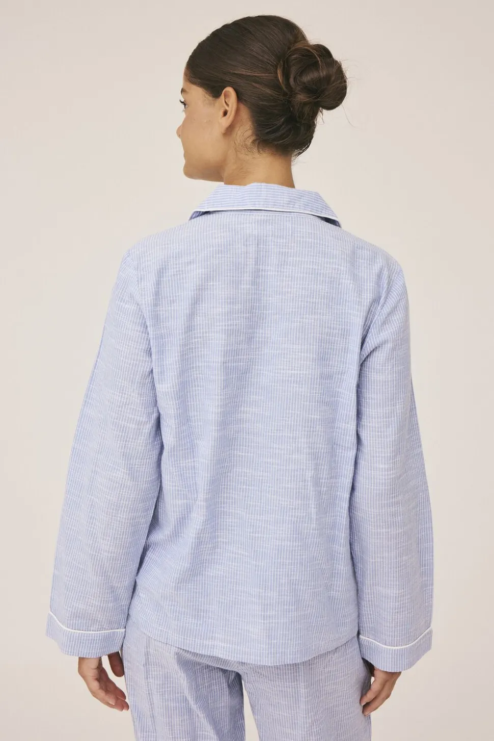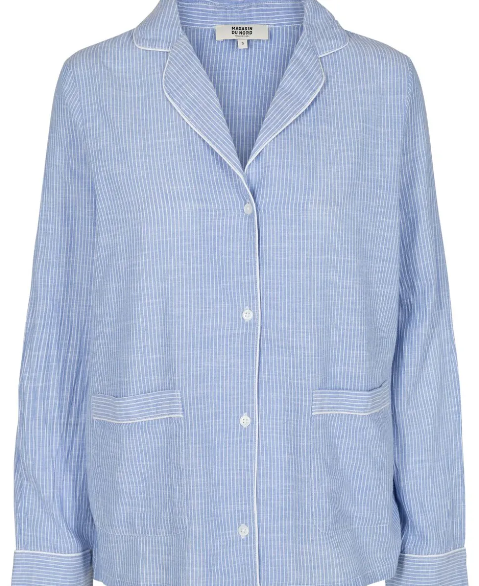 Skjorte fra Magasin du Nord Collection i en blød og lækker 100% bomuldskvalitet med smalle striber. Skjorten har en løs pasform med lange ærmer, knaplukning på fronten, to frontlommer og dekorative pipingbånd. Kombiner den fx med en underdel fra Magasin du Nord Collection for et komfortabelt og luksuriøst natsæt.