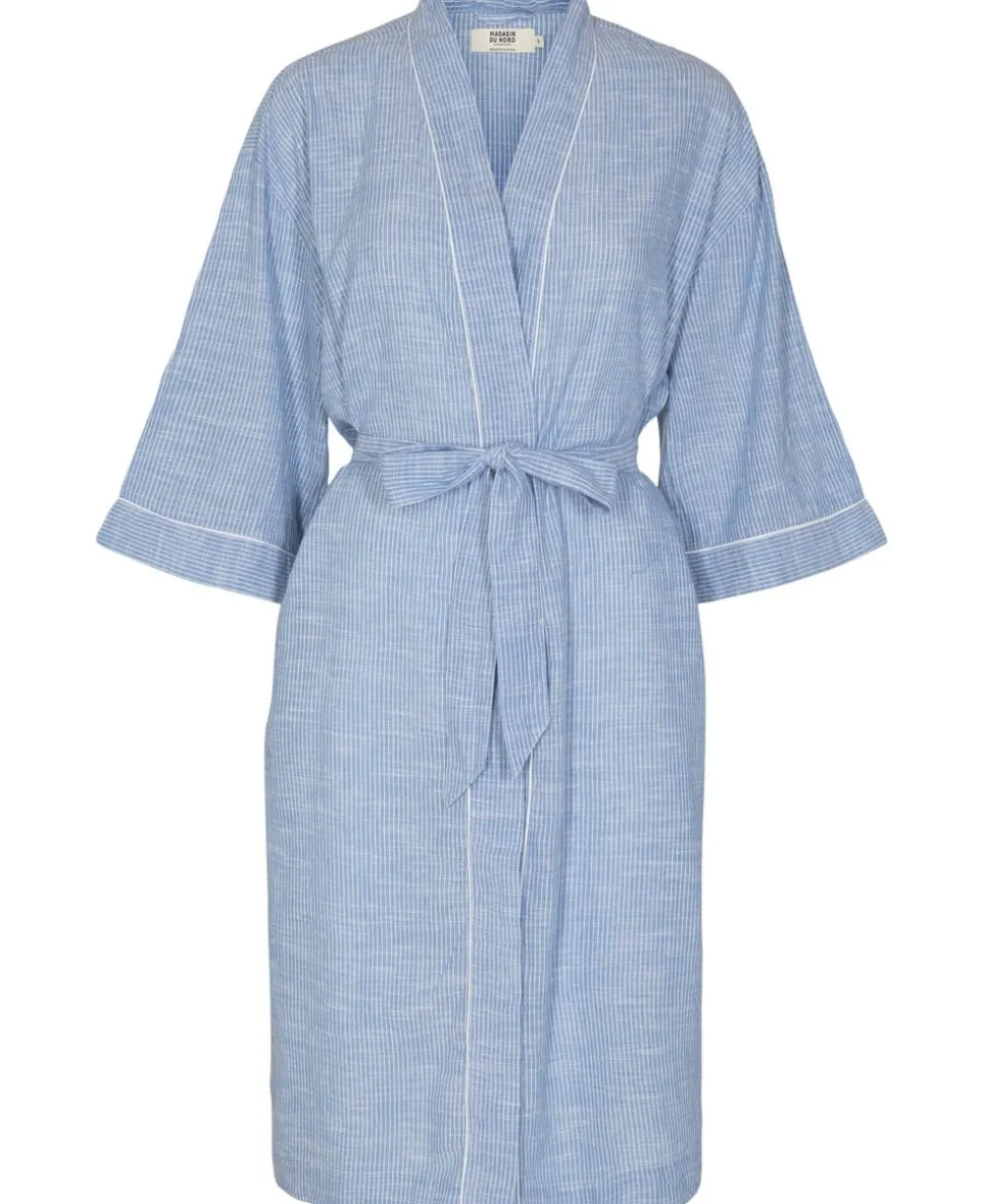 Kimono fra Magasin du Nord Collection i den blødeste kvalitet af 100% økologisk, GOTS-certificeret bomuld. Kimonoen er enkel i modellen med vide ærmer, bindebånd i taljen, sidelommer samt fine piping-detaljer, der giver en rigtig flot effekt. Se også de andre smukke styles i samme serie. Økologisk bomuld kommer fra landbrug, hvor man arbejder med naturen på en måde så både økosystemer og biodiversitet opretholdes. Det betyder, at der ikke benyttes giftige kemikalier, at vandforbruget begrænses og at der i højere grad anvendes regnvand i produktionen. Når du vælger økologisk bomuld, er du derfor med til at værne om jordens ve og vel.