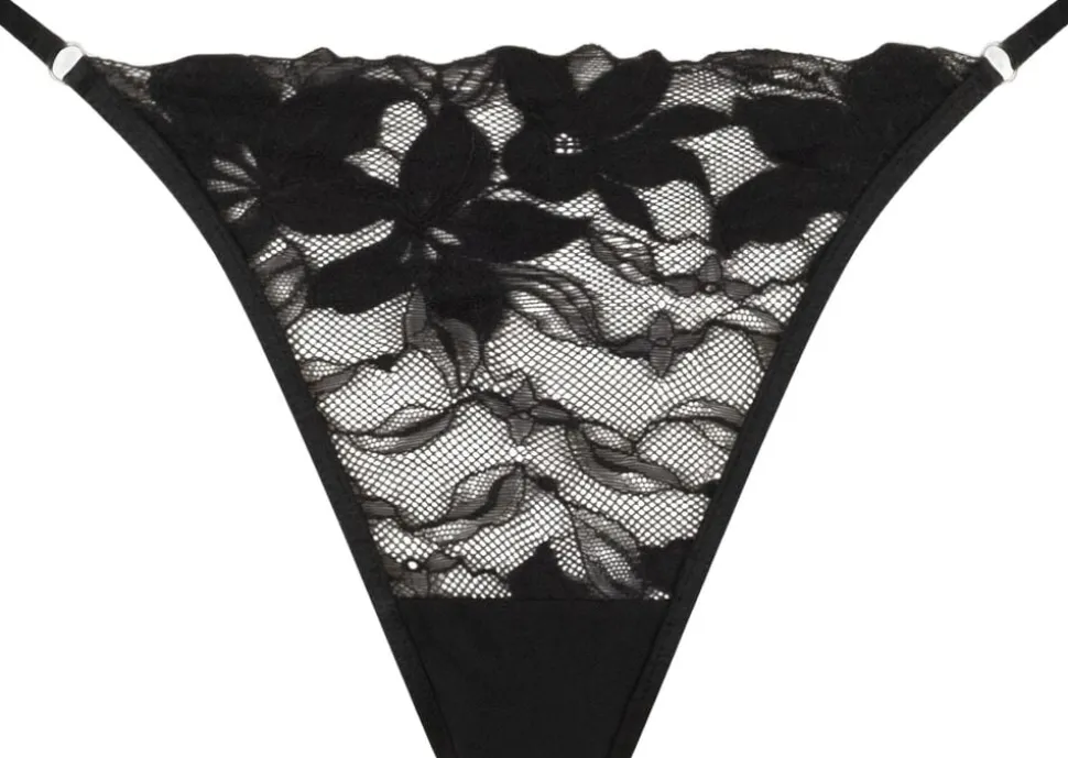 Udtryk din sensualitet i denne fantastiske g-streng! Den emmer af charme med de blomstrede blonder foran. Løft dit lingerisæt op i en højere klasse med en matchende bh.
