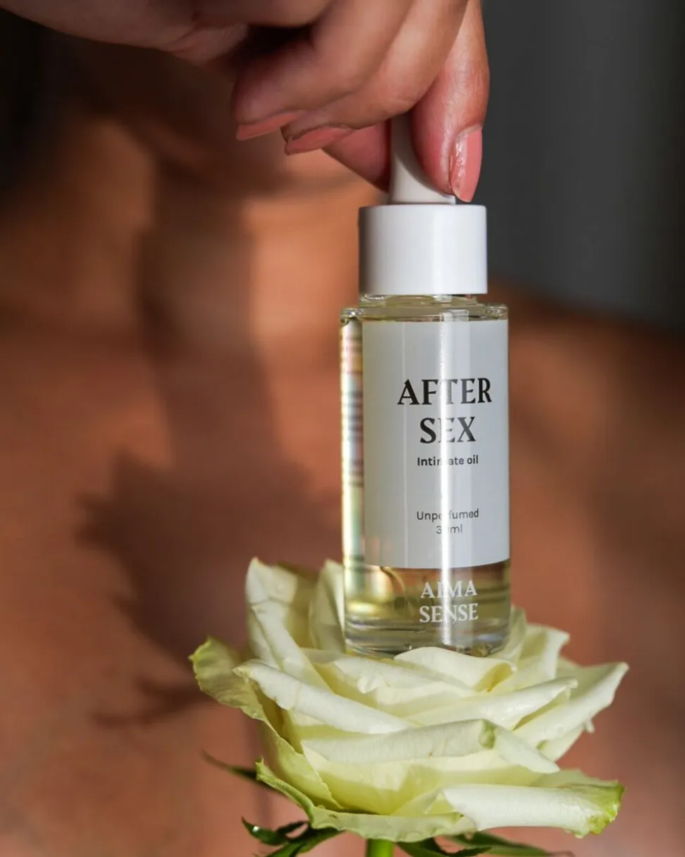 Aima Sense After Sex intimplejeolie er fremstillet i Sverige med naturlige ingredienser, der blødgør, beroliger og plejer den sarte hud. Olien behøver ikke skylles af og kan selvfølgelig bruges på hele kroppen egner sig både til dig og din eventuelle partner.