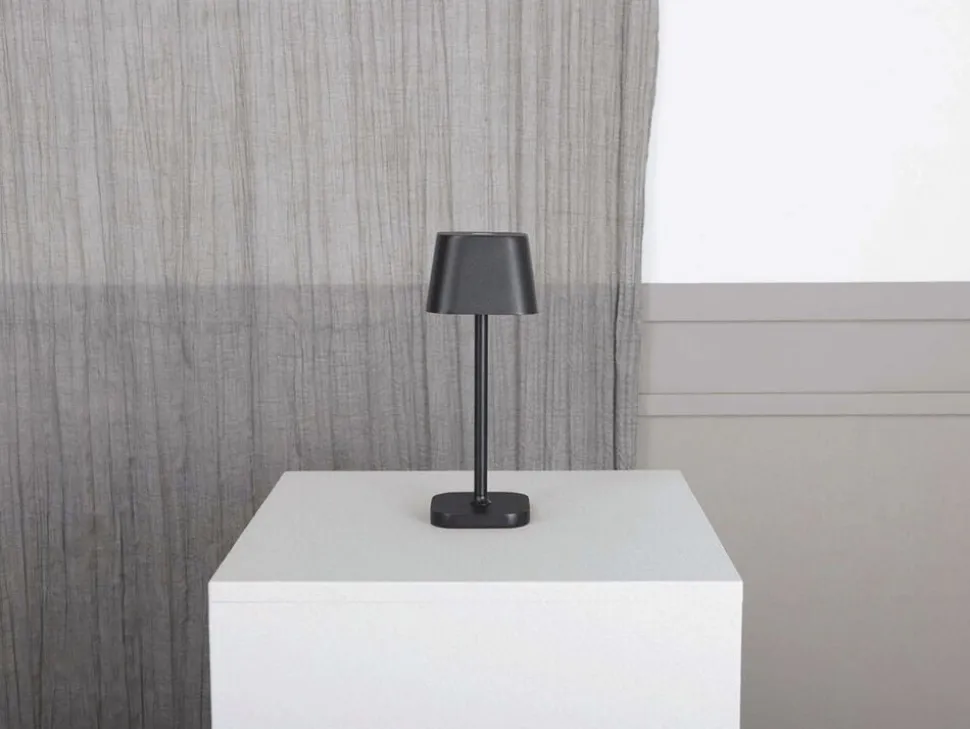 Den minimalistiske Isa lampe er udført i sort aluminum. Den elegante LED-lampe kan tændes ved hjælp af sin touch-funktion, og lampen har et USB-stik.