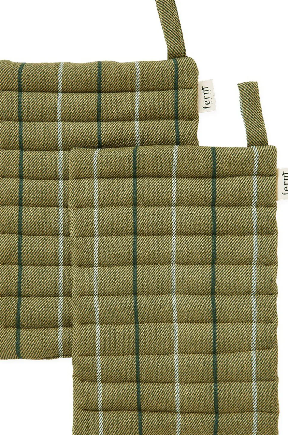 Ito familien præsenterer en moderne fortolkning af traditionelle køkkentekstiler. Ito Grydelap er fremstillet af økologisk bomuld, og fyldet er af genbrugspolyester. Den enkle, rektangulære form sikrer brugervenlighed, mens designet har et sart stribet mønster med en tofarvet twillvævning. De sælges i sæt af to.