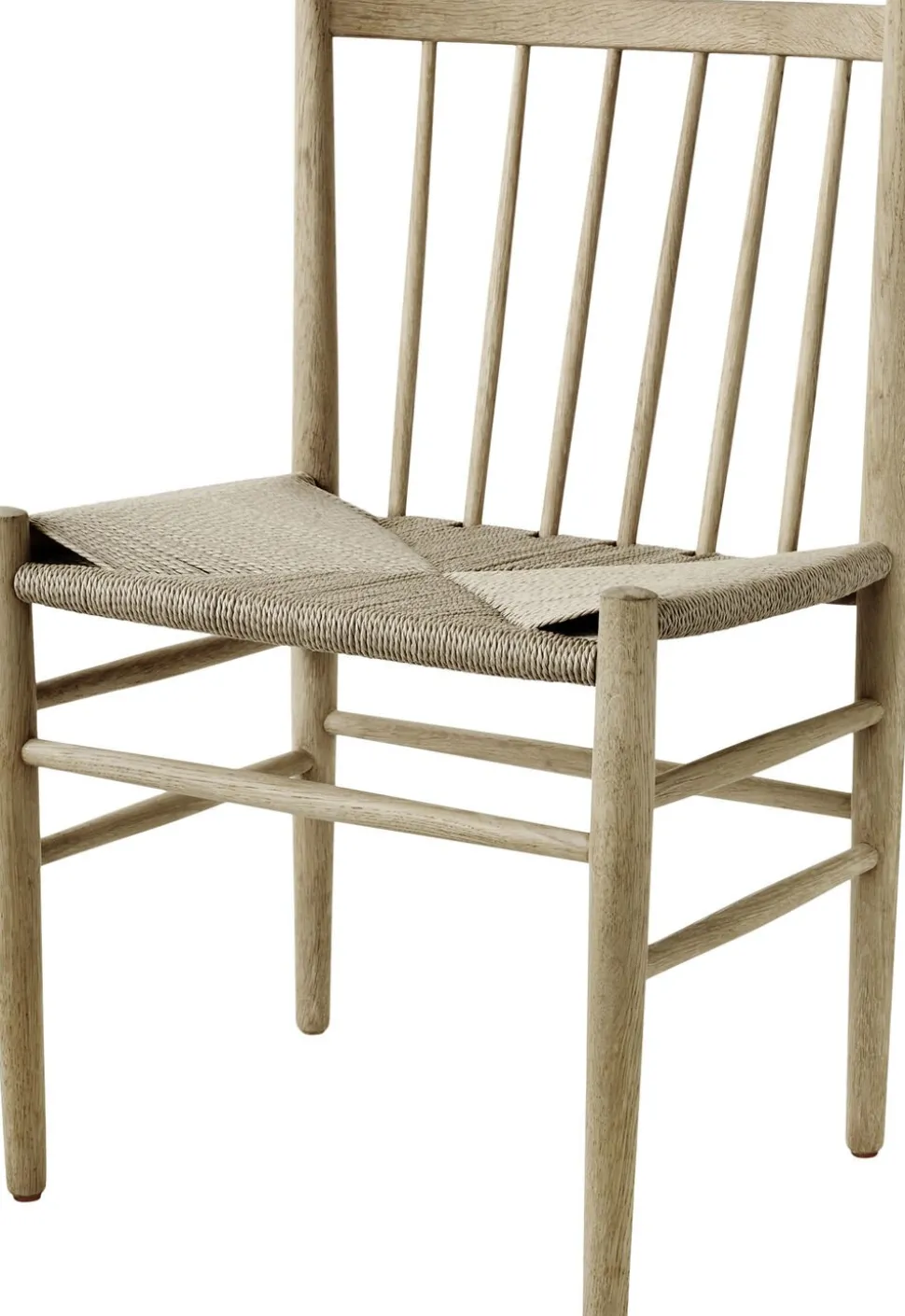 J80 Spisebordsstol uden armlæn designet af Jørgen Bækmark Jørgen Bækmarks J80 stol er indbegrebet af de kvaliteter, der var med til at definere FDB Møblers guldalder: Den er åbenlys funktionel, komfortabel og med et tidløst design, der understreger det møbelhåndværk, som er ledetråden i Jørgen Bækmarks arbejde. De drejede egestokke og det flettede sæde udstråler den naturlige kvalitet og det materialevalg, der er mindst lige så aktuelt i dag, som da stolen blev skabt i 1950’erne. For generationer har den været det sikre valg til spisestuen, hvor både design og komfort blev værdsat. Men den har også været brugt i andre sammenhænge, hvor man har brug for en god siddeplads. > J80 Jørgen Bækmark spisebordsstol uden armlæn Designer: Jørgen Bækmark Type: Spisebordsstol Model: J80 Materiale: Eg Farve: Natur Behandling: Lakeret Vedligeholdelse: Aftørres med opvredet klud Leveres samlet: Samlet Ryghøjde i cm: 82,0 Sædedybde i cm: 37,5 Ydermål på ben, i cm: 50,0 Mål: Højde x Bredde x Dybde: 82,0×50,0x50,1 Kan stables: Nej