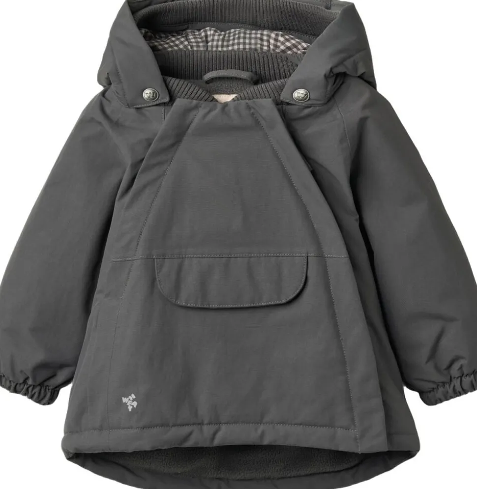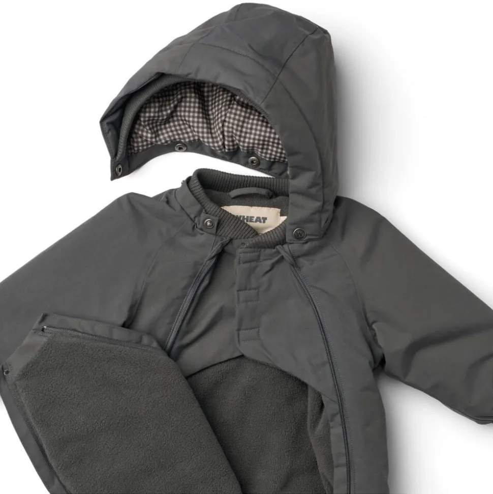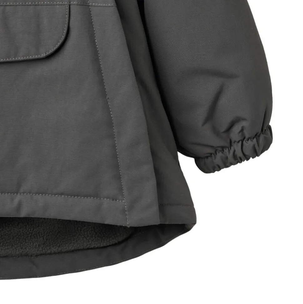 Bestseller jakke i anorak-look til din baby. – Normal pasform – Foret med blødt fleece på kroppen – Polyesterfor: Indvendigt i hætte og ærmer – Aftagelig og justerbar hætte med rib – Ribkrave – Skjult dobbelt lynlåse foran – Brystlomme med lommeklap – Elastik i manchetter – Reflekser Wheat’s jakke er lavet i åndbart, vind- og vandtæt materiale, og er perfekt til de mange kolde efterårs- og vinterdage. Den er designet med høj performance og komfort for øje, da materialet er slidstærkt og smudsafvisende og derfor nemt at rengøre og vedligeholde. Denne tekniske jakke er tænkt som en vinterjakke, da den har fleecefor og er lavet til at holde dit barn varm hele dagen lang. — Vandsøjletryk: 10. 000 mm Åndbarhed: 8. 000 g/m2/24 timer Slidstyrke: 50. 000 mm PFC-fri Fluorfri vand- og smudsafvisende finish (BIONIC FINISH ECO) Teknisk letvægts isolationsmateriale Tapede sømme GRS-certificeret — Standard 100 by OEKO-TEX® Yder materiale: 100% Genanvendt nylon Polstring: 100% Genanvendt polyester Fleecefor: 100% Genanvendt polyester For: 100% Genanvendt polyester