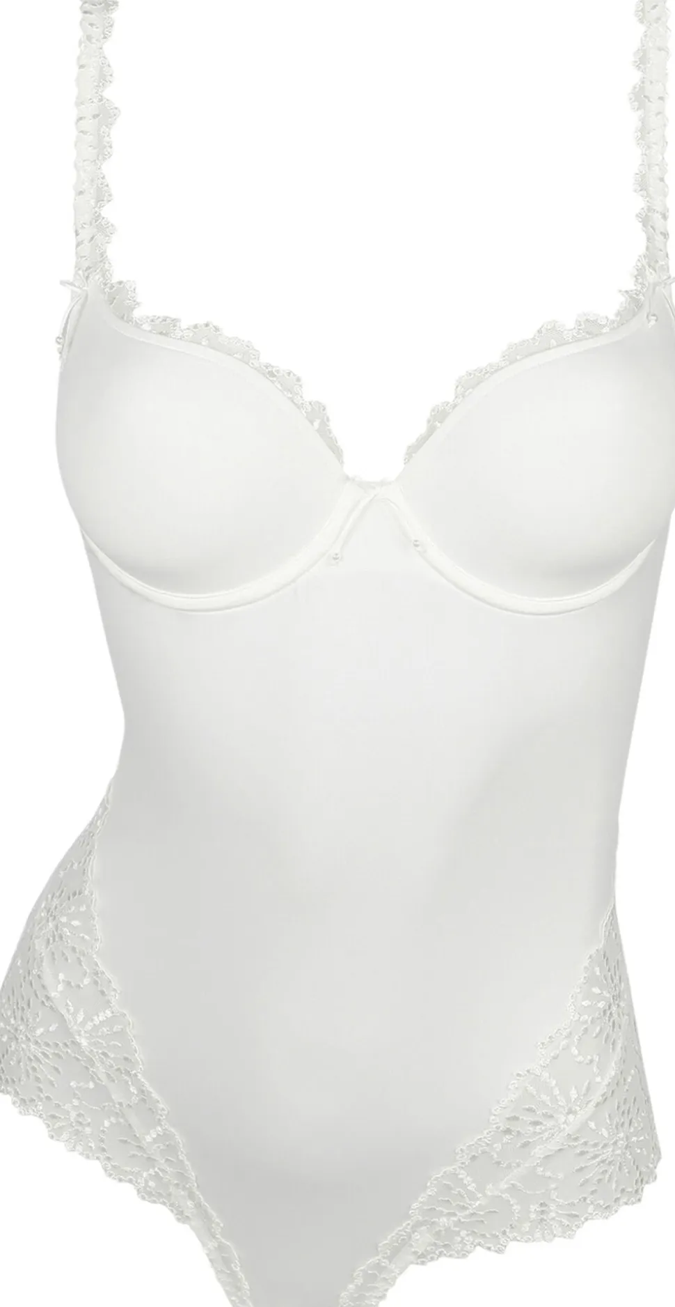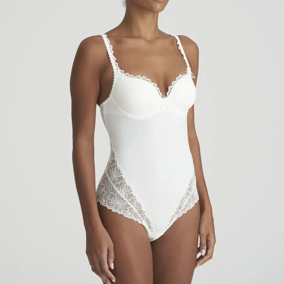 Den mest elegante og sofistikerede body stocking du kan forestille dig. Overdelen er Marie Jos fantastiske hjerteformede bh – som giver dig støtte og komfort – dette kombineret med en body som giver dig støtte- og får tøjet til at sidde så smukt på din silhouette. Bagdelen på bodyen er broderi – som i Janes Italian brief – så ingen synlige syninger – blot en smuk afslutning på en smuk body. Jane er en af Marie Jos mest ikoniske serier – som altid kommer i et hav af sæson farver. Men glem aldrig basis lingerie skuffen. Som du her kan fylde op med Jane i elegant forførende sort.