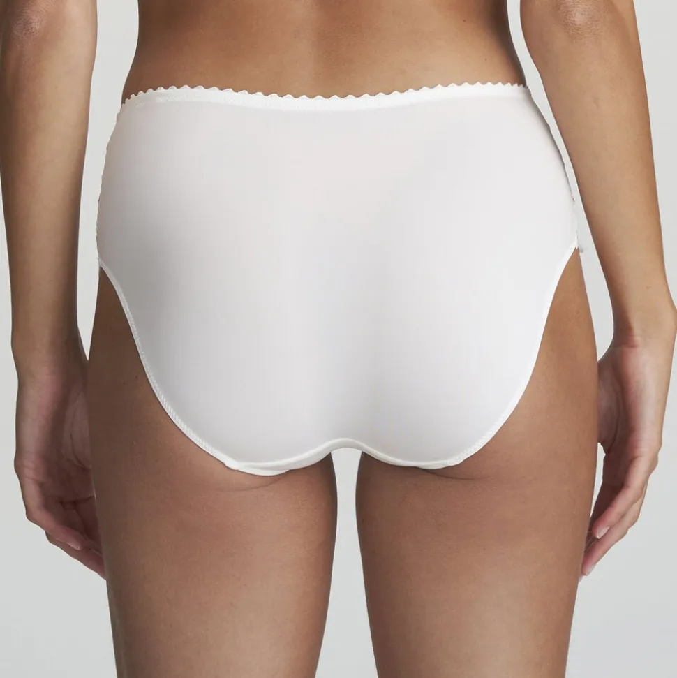Elegant højtaljet trusse med det smukkeste broderi som giver dig en smuk silhouette. Bagen er i blødt microfiber som sikre dig komfort. Jane er en af Marie Jos mest ikoniske serier – som altid kommer i et hav af sæson farver. Men glem aldrig basis lingerie skuffen. Som du her kan fylde op med Jane i den nye elegante basisfarve, Bois De Rose, som er perfekt under det lyse tøj – sommer såvel som vinter.. Er en høj trusse ikke noget for dig, så findes der flere andre varianter.