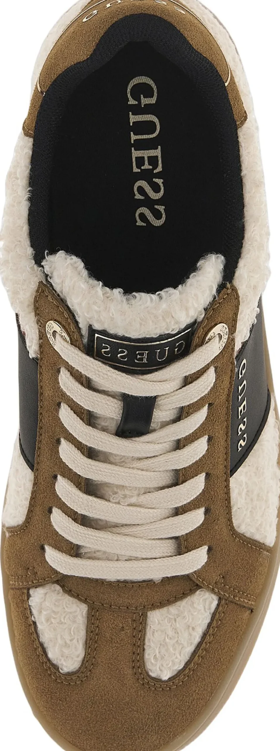 Sneakers fra GUESS, der består af en kombination af flere forskellige kvaliteter, der tilsammen giver en rigtig flot effekt. Derudover er skoen enkel i modellen med snørebånd på fronten samt synings- og logodetaljer på siderne. En cool sko i en lækker kvalitet.
