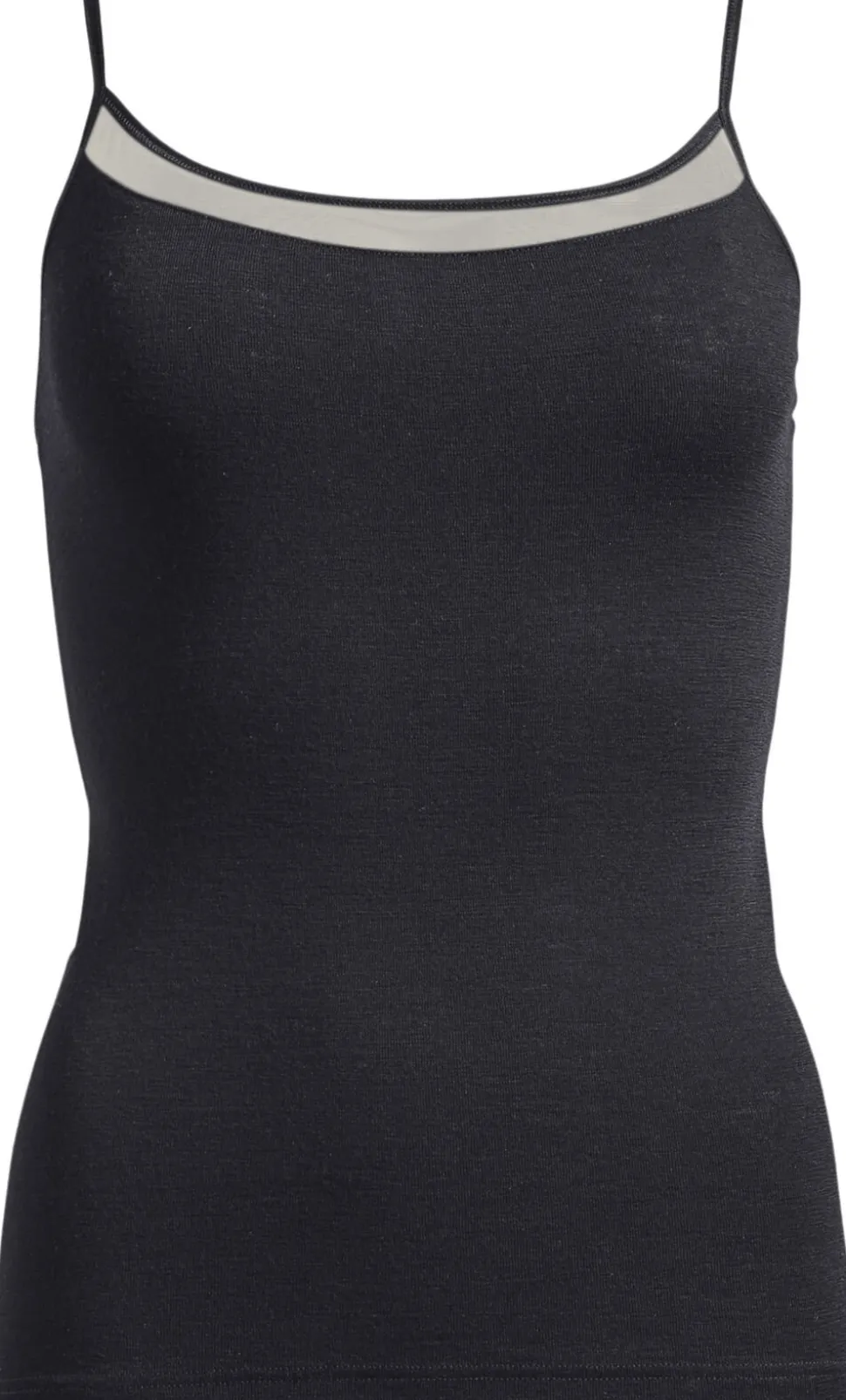 Chemise top med smalle stropper i et simpelt og moderne design. Toppen har en feminin og elegant meshkant i udskæringen. Serien er produceret i 100% merino-uld, som varmer kroppen i koldt vejr og køler i varmt vejr.
