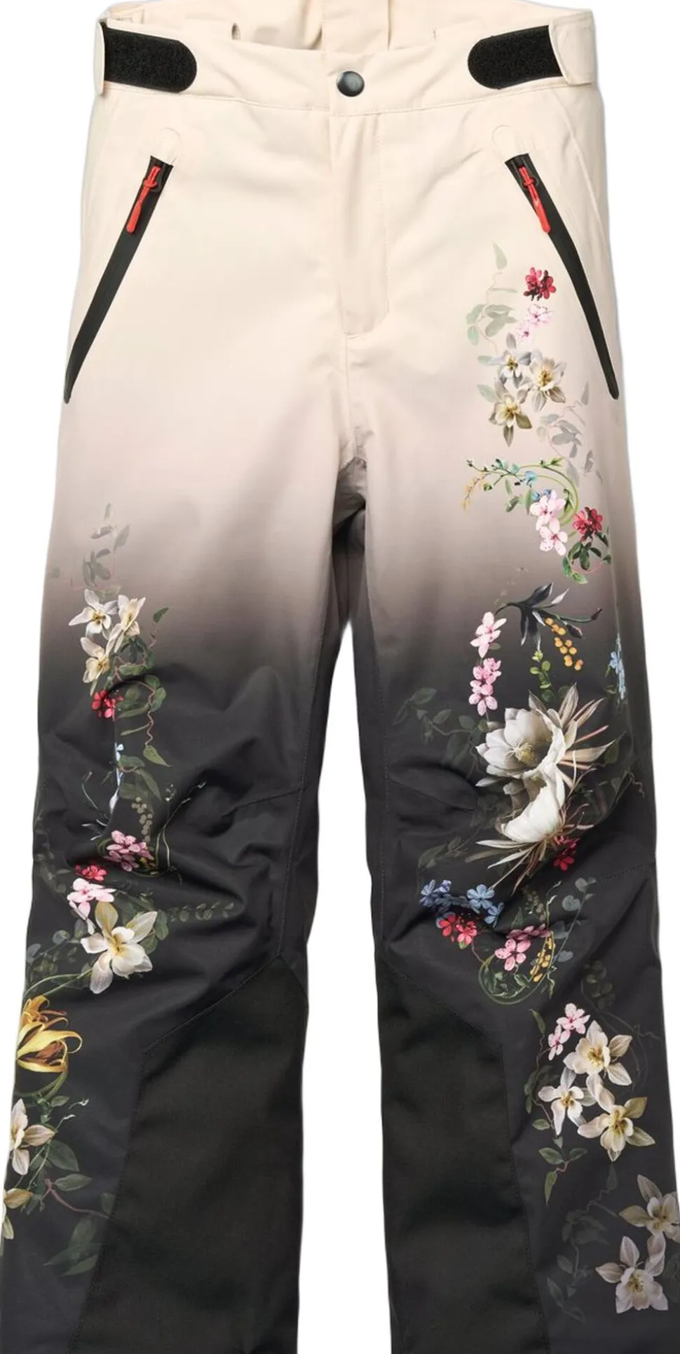 Disse overtræksbukser fra Molo er lavet i genanvendt polyester. Bukserne har trykknap- og lynlåslukning, udvendige, justerbare velcro-stropper, bælte stropper til Molos seler (ekstra tilbehør), justerbar benåbning med snefang og ekstra forstærkning mellem benene. Der er vandtætte lommer, refleks bagpå, fleece foret udsatte steder og vatteret med 3M Thinsulate.