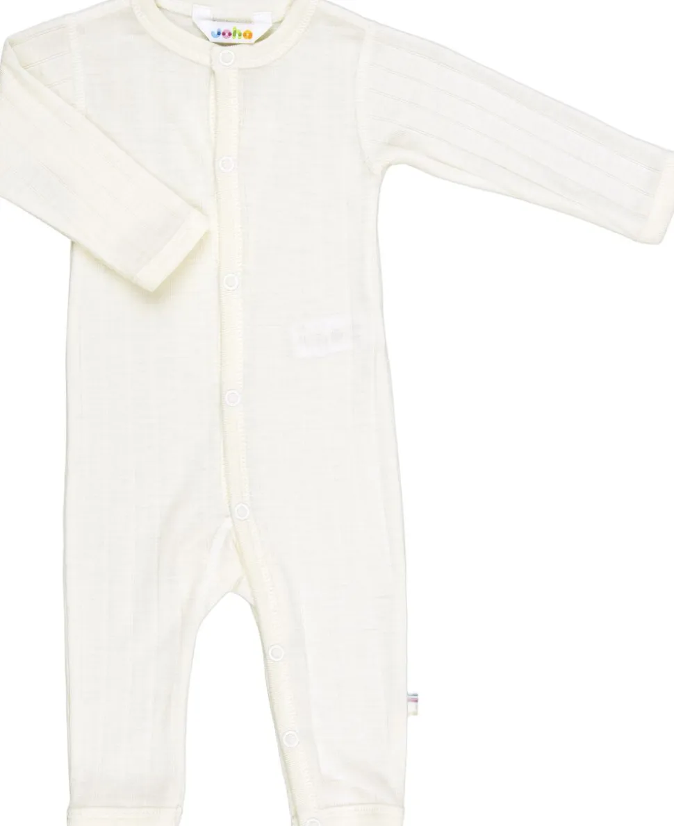 Heldragt. Lukkes med trykknapper helt ned gennem det ene ben. En ekstra fin uldkvalitet med silke som er dejlig blød. Lodret rille mønster og et lidt skinnende udtryk gør denne kvalitet ekstra fin og lækker. Ensfarvet. Wool rich blend og Oeko-tex 100 mærket.