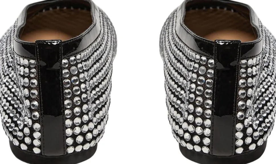 • Meshballerina • Beklædt med rhinsten • Rund tå • Sort patent-look • Flad sål • 85% mesh, 15% læder