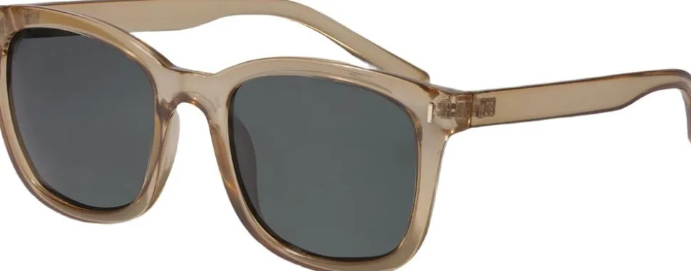 Classics never go out of style. Klassiske solbriller med transparent brunt stel og mørkegrønne linser. Et par all-time-favourite shades, der vil følge dig rundt til sommerens mange arrangementer, festivaller og feriedestionationer. Solbrillerne er fremstillet af 75% genanvendt plast og leveres i en stofpose, der kan benyttes som både beskyttelse og pudseklud. Alle Pilgrims solbriller har UVA/UVB-beskyttelse, er CE-godkendt og har UV400-beskyttede glas.