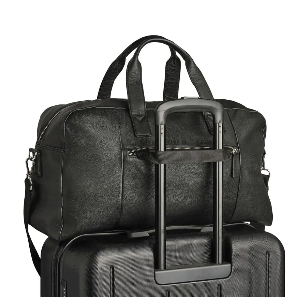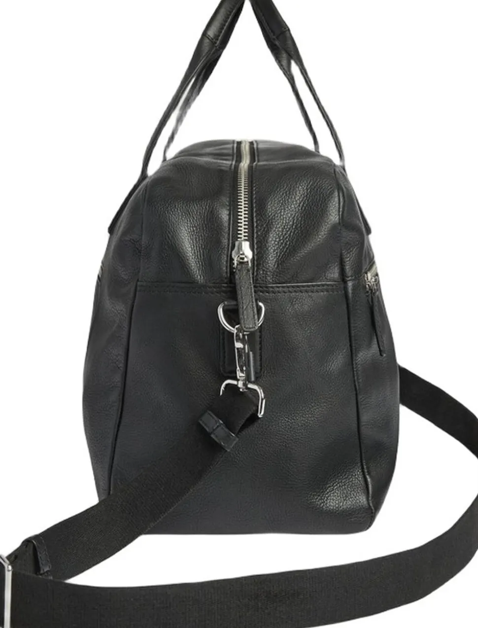 Keaton Weekend Bag, 30L fra Markberg Man er en elegant og rummelig Weekendtaske i 100% blødt kalveskind. Et tidløst design, der kombinerer eksklusivt håndværk og funktionalitet perfekt til både rejser og hverdagsbrug. Kvaliteten er LWG-certificeret og er en del af vores Zero Waste, hvor intet skind går til spilde i produktionen. Læderets struktur og nuance kan variere naturligt og giver tasken et unikt udtryk. På fronten har rejsetasken en stor synlig lynlåslomme, med plads til mindre ejendele. Det store hoved rum med lynlås, der kan rumme 30 liter, er der god plads til de ting du har med på rejsen, til træning eller til weekendopholdet. Indvendigt finder du også en lynlåslomme i den ene side. Bagpå tasken er der en lynlåslomme, hvor der er en luggage strap du kan tage frem, men til fastgørelse på din kuffert, når du er ude og rejse. Tasken har en bred justerbar og aftagelig skulderrem. Dertil har tasken to bærehanke, og taskens slidstærke for er i 100% polyester. Taskens hardware er i metal, som er belagt og så er det nikkelfri. Rejsetasken måler 51 cm x 29 cm x 20 cm.
