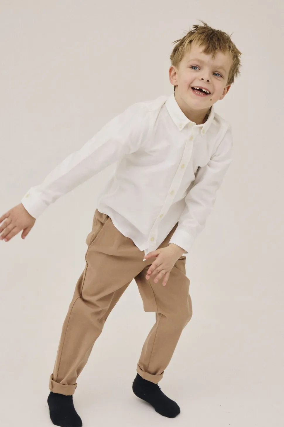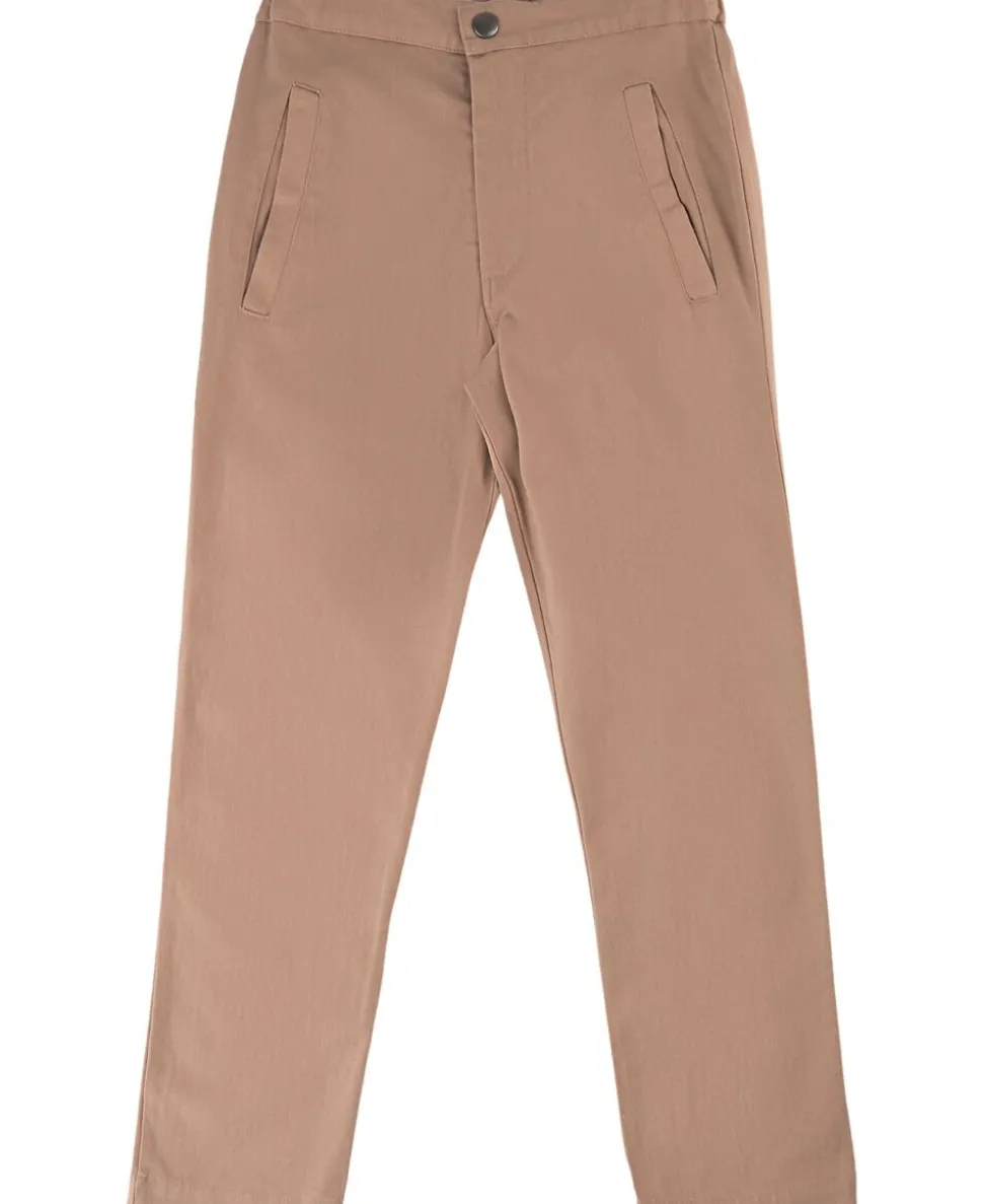 Smarte bukser fra BAKITO by Magasin i en blød, økologisk GOTS-certificeret bomuldskvalitet. Bukserne er enkle i modellen med lynlås- og trykknapslukning på fronten, justerbar elastik i taljen samt sidelommer og en baglomme. Et par seje og komfortable bukser af den bedste kvalitet. Fås i flere farver.