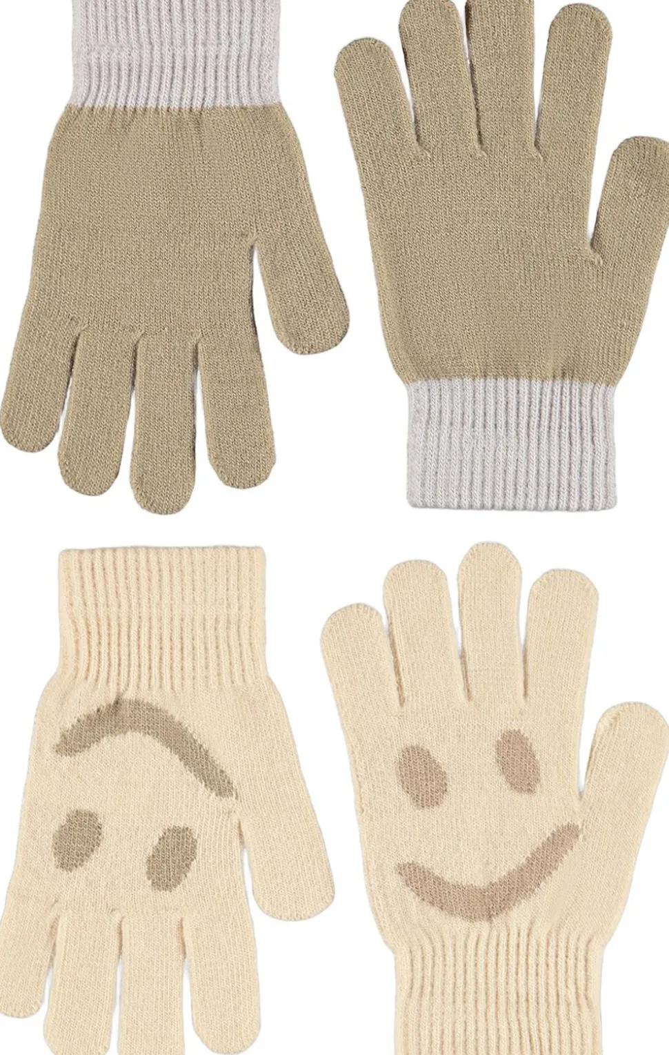 creme farvet ribstrikket hue fra Molo med ombuk og broderet smil i sort.