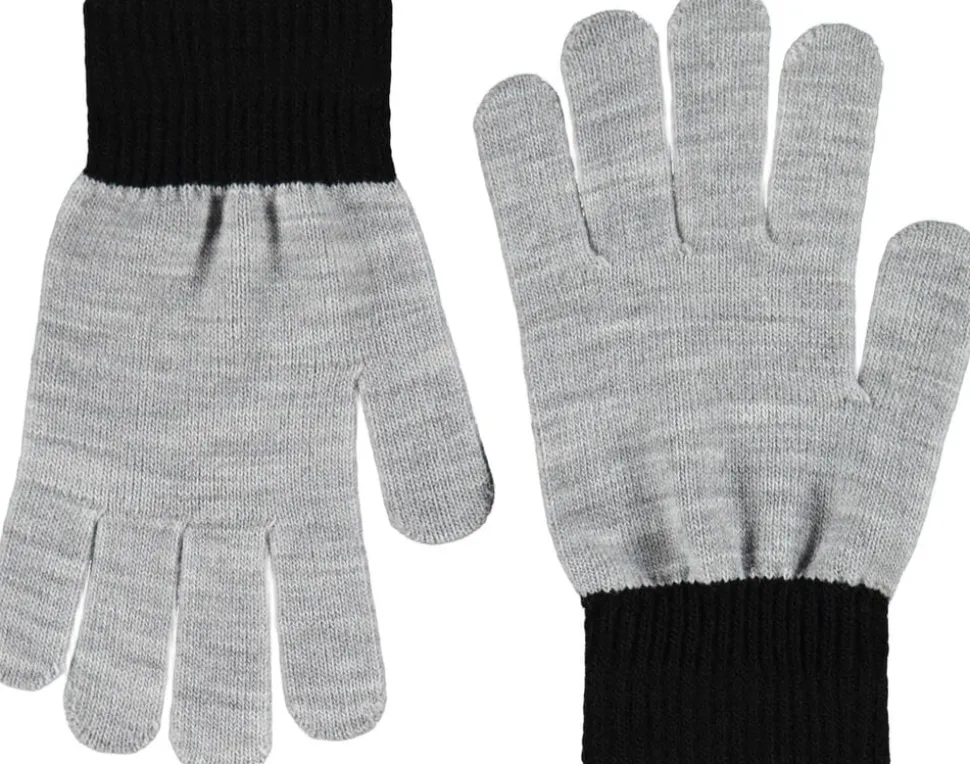 Sort ribstrikket hue fra Molo med ombuk og broderet smil i hvid.