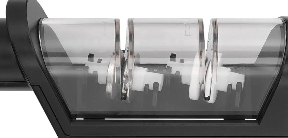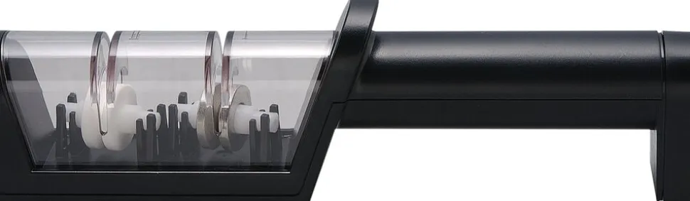 MIYABI knivskærperen er et praktisk alternativ til slibesten. Den er let at betjene, da slibevinklen er forudindstillet. Ideel til både højre- og venstrehåndede brugere. Perfekt til alle MIYABI knive og andre knive af høj kvalitet, med undtagelse af knive med bølgeskær.
