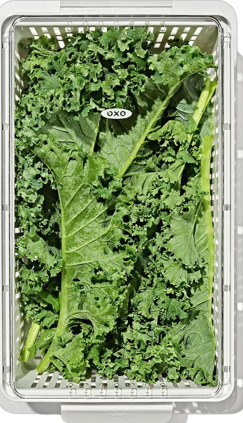 OXO Køleskabsopbevaring er opbevaringsbeholdere designet til at hjælpe med at holde dine produkter i køleskabet friske i længere tid. Mellem beholderen har den perfekte størrelse til bladgrøntsager, peberfrugter, vindruer og anden frugt og grønt. Den justerbare skillevæg holder produkter organiseret og synlige, hvilket hjælper med at reducere madspild slut med at finde en glemt rådden grøntsag bagerst i køleskabet. Den indvendige kurv holder produkterne eleveret og fremmer optimal luftcirkulation, så dine grøntsager holdes friske. Den indvendige kurv er udtagelig, så du kan bruge den til at skylle grøntsagerne. Beholderens komfortable håndtag gør det nemt at tage beholderen til køkkenbordet, og låget, der kan åbnes fra alle sider, giver adgang, uanset om du åbner det i køleskabet eller på køkkenbordet. Låget kan endvidere sættes på højkant på kurvens kant. Mellem beholderen måler 35,1 cm x 18,9 cm x 11,8 cm. Beholderen er BPA-fri, tåler opvaskemaskine og kan stables med andre OXO Køleskabsopbevaringsbeholdere.