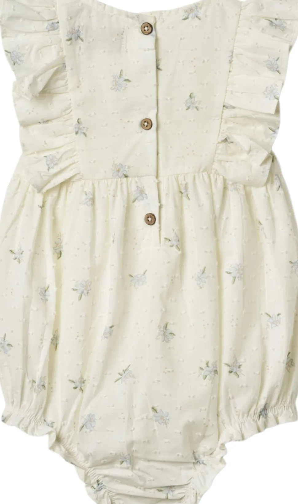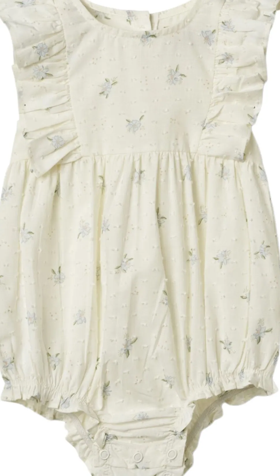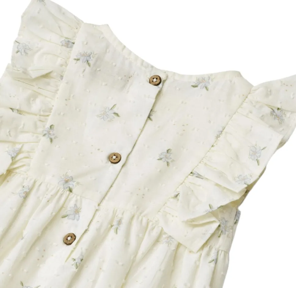 Ærmeløs sommerdragt med korte ben i økologisk bomuld til din baby. – Elastik i ærmegab- og lår – Bærestykke med læg og volumen i underdelen – Vævet metervare med små prikker – Knaplukning bagpå og trykknaplukning i skridtet – Wheat håndtegnet print – Metervare med små vævede prikker Wheats søde sommerdragter er essentielle til de helt små, når vejret skifter og sommeren atter melder sin ankomst. Denne dragt er perfekt til de mange festlige lejligheder, da den har skønne detaljer som små flæser ved ærmegabet samt et bærestykke med læg og vidde i underdelen. Denne dragt kan styles med et par strømpebukser under eller blot en tynd kortærmet body på de varme dage. Sæt en cardigan til for at fuldende looket. — – Standard 100 fra OEKO-TEX® – 100% Økologisk bomuld – Produktet er GOTS-certificeret