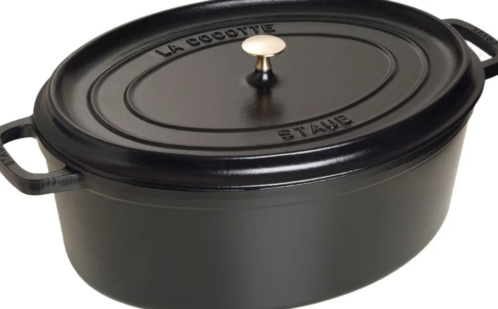 Rummelig cocotte i grå fra STAUB. Cocotten måler 41 cm. og kan rumme hele 12 L. og er dermed ideel til f.eks. julestegen eller når der skal laves mad til rigtig mange mennesker.