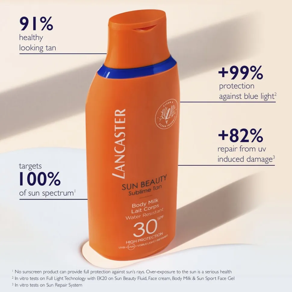 Forkæl kroppen med Body Milk SPF 15 – vores ultralette og sanselige bodylotion med solbeskyttelse.Vores rene og miljøvenlige solcreme dækker 100 % af solspektret* og er samtidig med til at reparere hudens eksisterende solskader og give dig en dejlig sanseoplevelse.Den ultralette og ikke-fedtende creme er usynlig på huden og giver en sund og solgylden glød dobbelt så hurtigt, som hvis du opholdt dig i solen.** Denne bodylotion smelter øjeblikkeligt ind i huden uden at efterlade hvide striber.Den har en fløjlsblød finish, der både fugter og forskønner huden.* Intet solprodukt kan give fuld beskyttelse mod solens stråler.Det kan være sundhedsfarligt at opholde sig for længe i solen.** In vitro-test af Tan Activator Complex i Sun Beauty-serien.