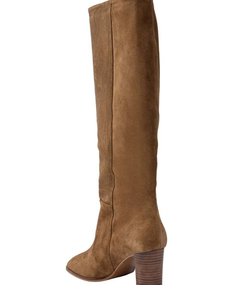Lang støvle fra Billi Bi i en lækker ruskindskvalitet. Støvlen er enkel i modellen med en tyk hæl, en afrundet snude samt diskrete syninger. Et par skønne støvler i den smukkeste kvalitet.