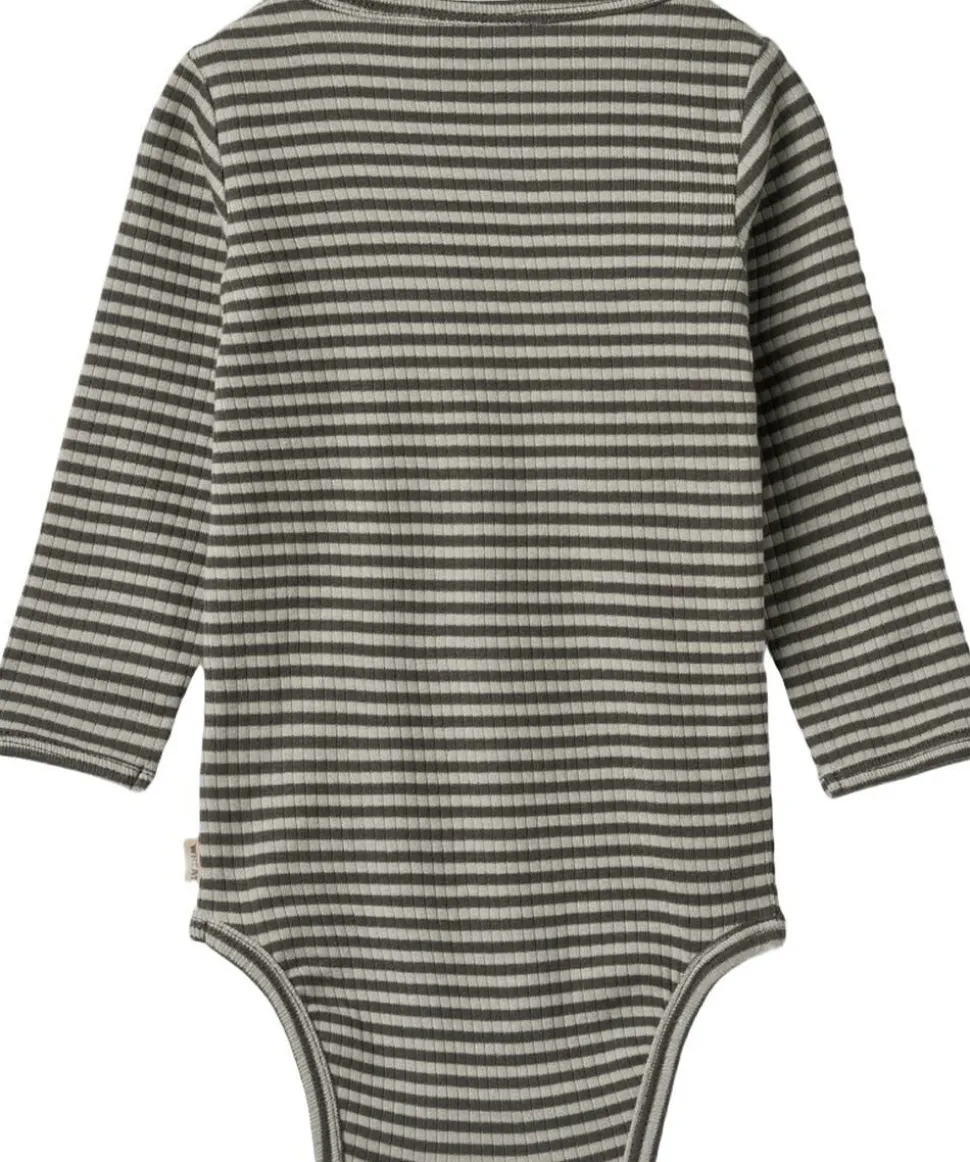 Langærmet rib body med striber i blødt økologisk bomuld til din baby. – Ribstruktur – Tæt pasform – Trykknapper på den ene skulder – Trykknapper i skridtet for bedre komfort – Stribet Wheats basis body er en sand klassiker i garderoben, når det kommer til småbørn. Denne body har trykknapper på den ene skulder samt i bunden for bedre komfort, når du skal klæde dit barn på. Brug bodyen som den inderste del i ethvert outfit, da den er blød at have tæt på huden. — – Standard 100 af OEKO-TEX® – 100% Økologisk bomuld – GOTS certificeret
