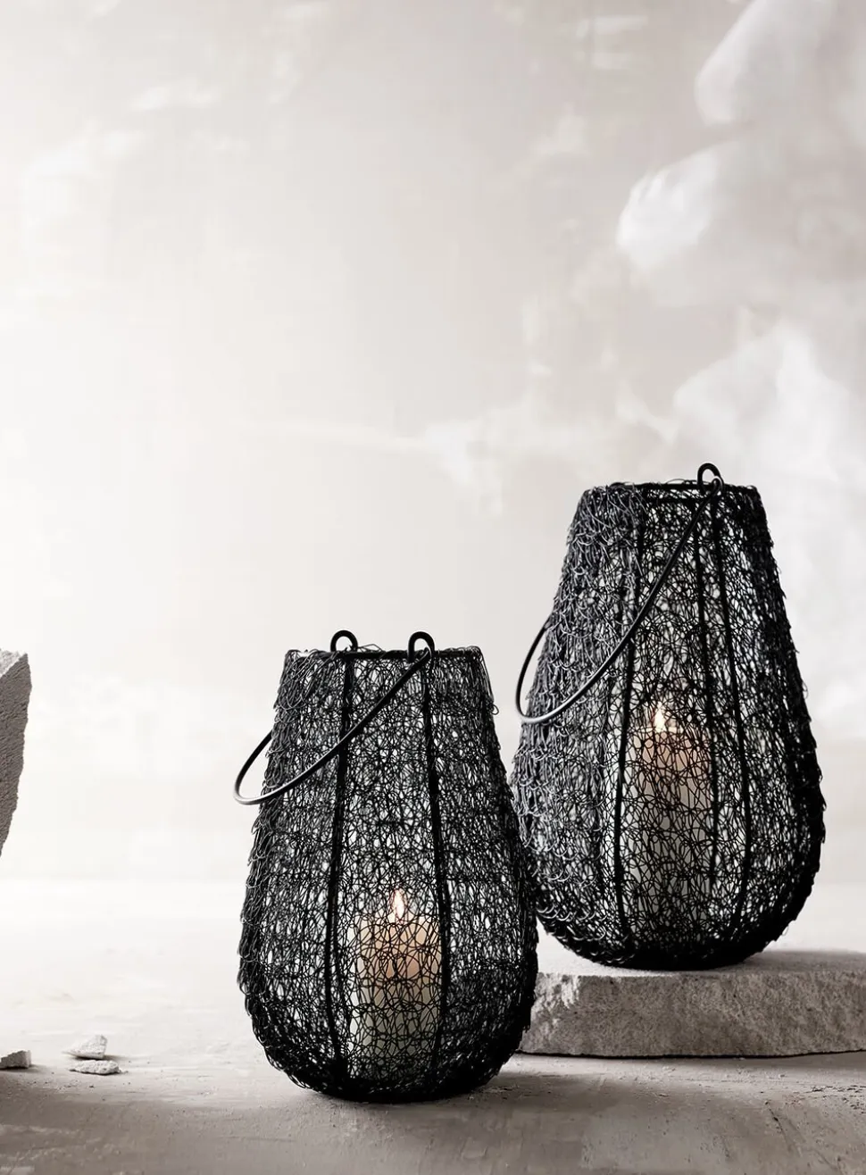 Kumo lanternen er lavet af jumbled wire et slags filtret metalbånd, der er viklet rundt om lanternen i et detaljeret og krøllet mønster, der skaber lanternens runde, organiske form. Når der tændes lys i lanternen, vil det smukke mønster skabe et dansende skyggespil på væggen.