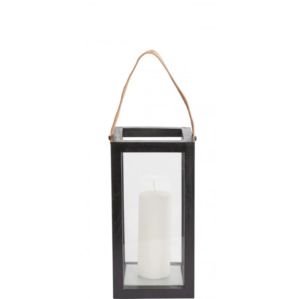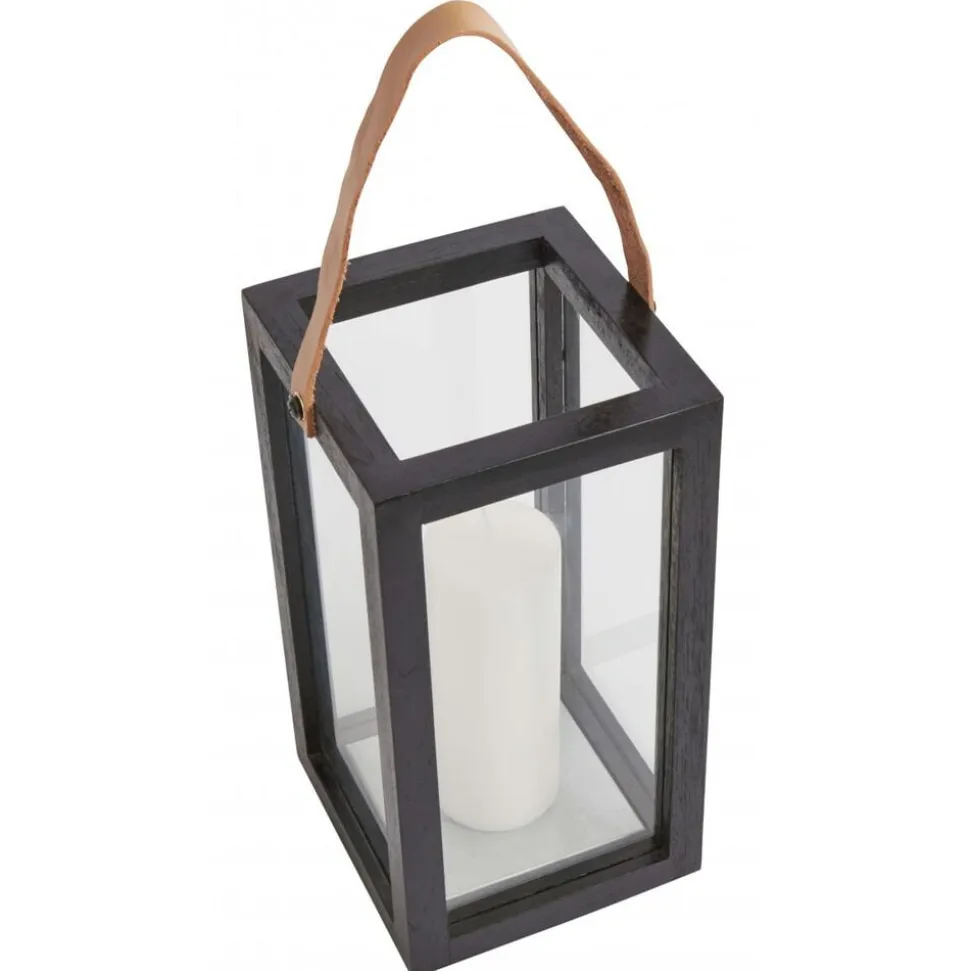 Firkantet og enkel lanterne fra MUUBS, produceret i teaktræ og glas og med læderhank. Hanken i læder giver lanternen et råt udtryk og gør det samtidig nemt og praktisk at flytte lanternen rundt. Lanternen har et nordisk udtryk med kant og fås også i natur farvet samt i en større størrelse.