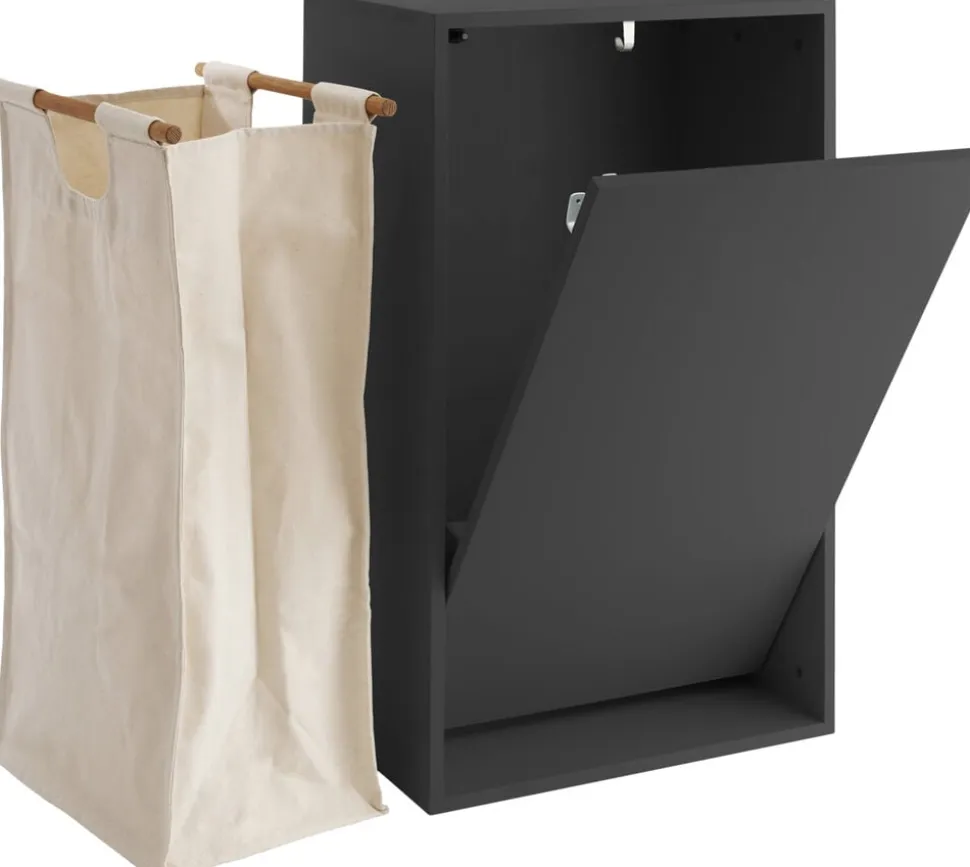 Stilfuld vasketøjskurv. Den væghængte vasketøjsboks er designet med fokus på funktionalitet og et enkelt, nordisk udtryk. Det væghængte design gør det muligt at spare plads, lette rengøringen på gulvet og undgå fugt fra badeværelset. Derudover sikrer det en dekorativ og pæn løsning til dit hjem. Med den smarte tryklås kan du nemt åbne boksen, sortere vasketøjet og transportere det fra A til B. Løsningen er også ideel til teenager- eller soveværelset, hvor vasketøjskurven er et stilfuldt indslag, der løser en praktisk udfordring i dagligdagen. Overfladen kan også bruges som hylde til dekorative genstande. Vasketøjsboksen er lavet af træ, og den hørfarvede pose i boksen er syet af GOTS-certificeret tekstil og lamineret med et let plastlag, så posen også holder på fugten fra vådt vasketøj. Alt i alt er ReCollectors’ væghængte vasketøjskurv den perfekte kombination af enkelthed, stil og funktionalitet til dit hjem. Materiale og målMateriale: træBredde: 43 cmHøjde: 70 cmDybde: 30 cmVægt: 10. 5kgVolume: 38LOBS. Vi har valgt at flatpacke vores vasketøjsboks for dermed at kunne effektivisere transporten og undgå transportskader, hvilket i sidste ende reducerer vores CO2 forbrug. Derfor leveres boksen ikke samlet, men via vores udførlige guide er den nem og enkel at samle og montere. VedligeholdelseVasketøjskurven rengøres med en blød, fugtig klud eller svamp. Tilsæt evt. et mildt opvaskemiddel eller sæbe. Eftertørres med en ren, tør klud.