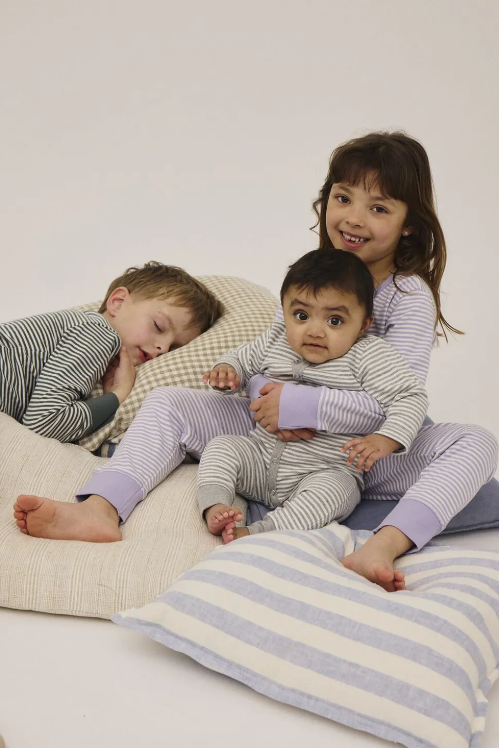 Heldragt fra Magasin du Nord Collection i den blødeste kvalitet af 100% økologisk bomuld med GOTS-certificering. Heldragten er enkel i modellen med et stribet mønster, trykknapper, ribkanter samt lange ben og ærmer. Den sødeste heldragt i den lækreste kvalitet.