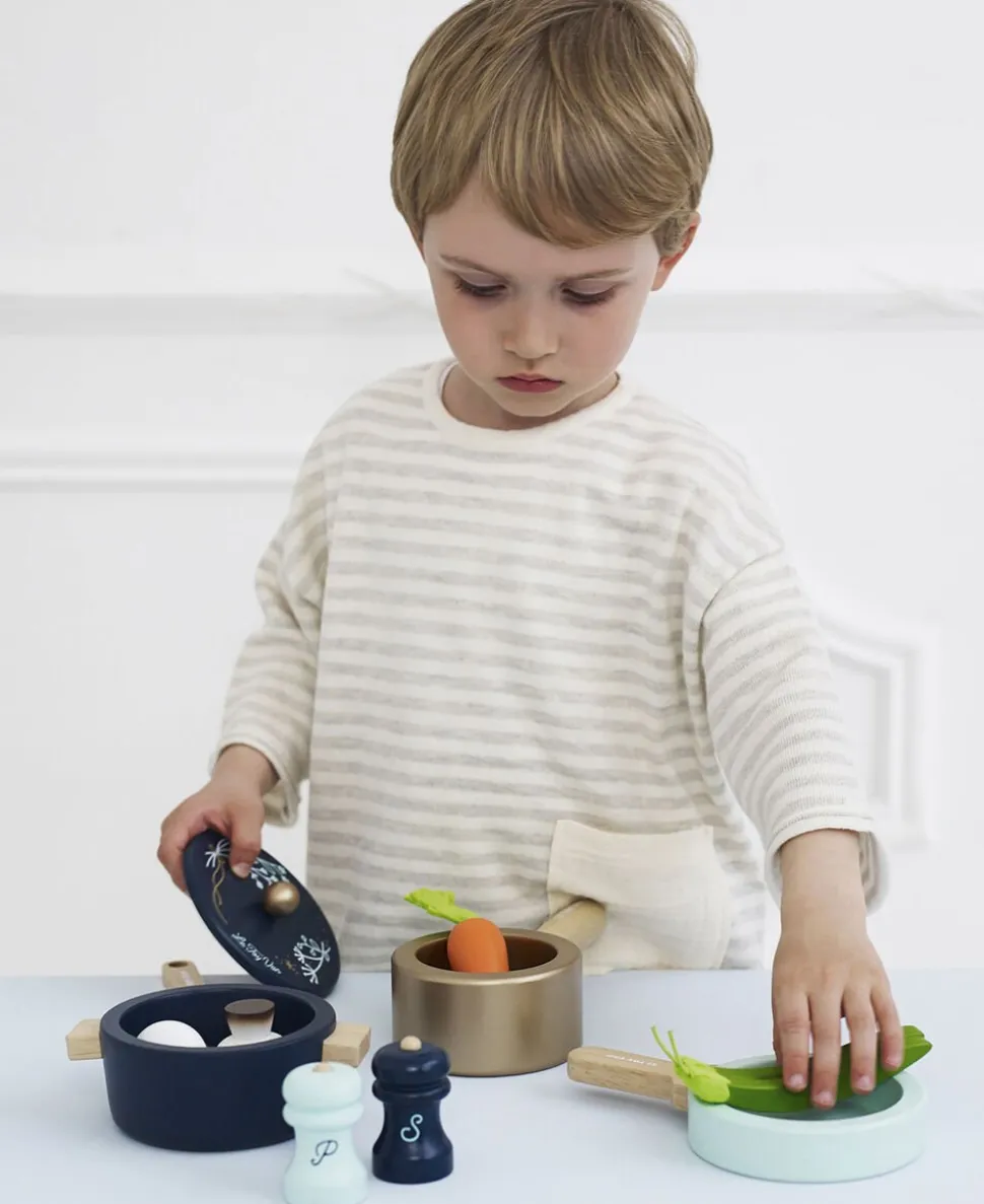 Gryder & pander: Til de små kokkespirer så er der her det helt perfekte grydesæt i træ.